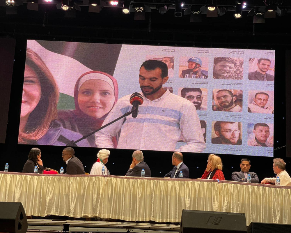معتصم مرتجى شقيق الشهيد ياسر مرتجى من غزة عبر تن سعادته بالقاء هذه الكلمة في المؤتمر الذي يحمل اسم الشهيدة شيرين ابو عاقلة ويمثل كل فلسطين من القدس والضفة وغزة ما يعكس وحدة شعبنا الفلسطيني.