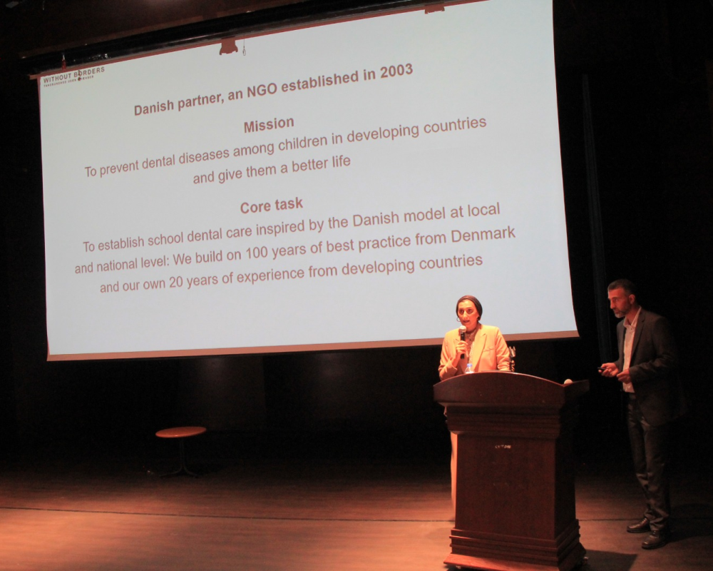 بدورهم رحب الدكتور رائد مصطفى المدير الطبي لصحة الاسنان في الاغاثة الطبية وصابرين عبيد الله ممثلة الاغاثة في اللجنة الوطنية لصحة الاسنان بالحضور و قدما شرحا مفصلا عن المشروع حيث اشاروا الى ان الشركاء والداعمين للمشروع اطباء بلا حدود الدنماركية التي تسعى لحماية اسنان الاطفال في الدول النامية حيث المؤسسة الدنماركية لنقل التجربة الدنماركية ومدتها ١٠٠ عام في هذا المجال
