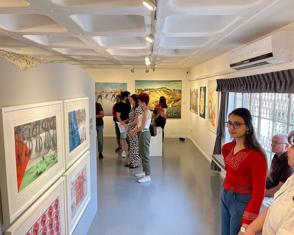 وأكد أن المعرض يقام تحت عنوان فكر ووجه ومكان حيث يقصد الفكر للفنانين الكبار والوجه هي وجوه الفنانين ىسليمان منصور وخالد الحوراني ونبيل بركات وسمر غطاس وغيرهم من الاسماء الرائعة للفنانين التي اصبحت جزء لا يتحزا من الفندق ومعرضه كما ان لوحات الفنانين اصبحت جزء من منتج الفندق الفني والسياحي الذي يروج لفلسطين.