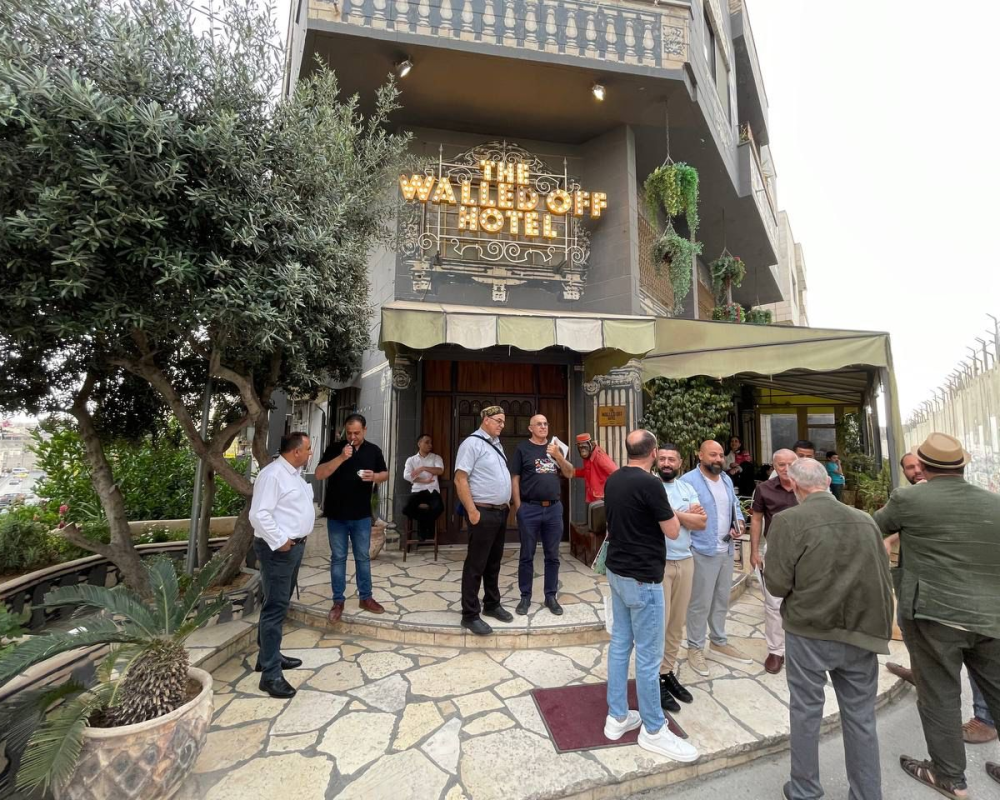 وقدم الفنان سليمان منصور باسم المجلس الاستشاري شكرا كبيرا لمدير الفندق المحاط بالجدار وسام سلسع الذي استطاع تقديم الفن الفلسطيني للغرب والحركة السياحية حيث كانت الحركة الفنية تعرض اعمالها في الوطن والاردن لكن اليوم يشاهدها مئات الالاف من السياح الاجانب الذين باتوا ياتون للفندق بهدف التعرف على الفن الفلسطيني لان الفندق اصبح له سمعة دولية واصبح وجهة لكل محبي الفن.