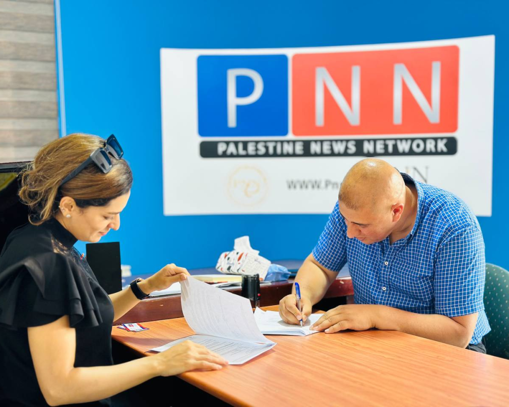 و وقع الاتفاقية عن منظمة اطباء بلا حدود مديرة دائرة الاتصال والاعلام بالمنظمة الطبية سلام الخطيب وعن شبكة فلسطين الاخبارية الزميل منجد جادو مدير عام الشبكة في مقر PNN ببيت لحم .