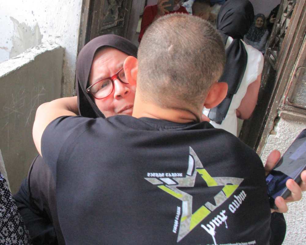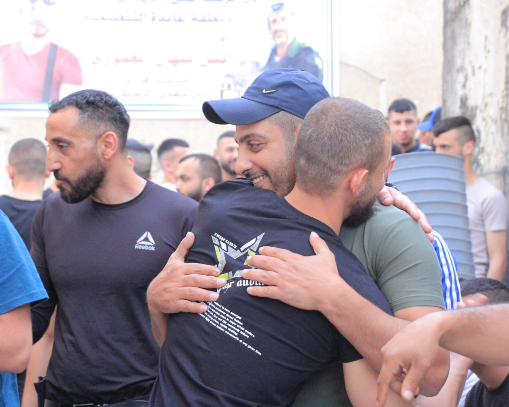 وعند الوصول لمدخل المخيم نظمت الحركة بالتعاون مع فعاليات ومؤسسات واهالي المخيم مسيرة جماهيرية وصولا لمنزله حيث كانت عائلته في استقباله واستقبال المهنئين.