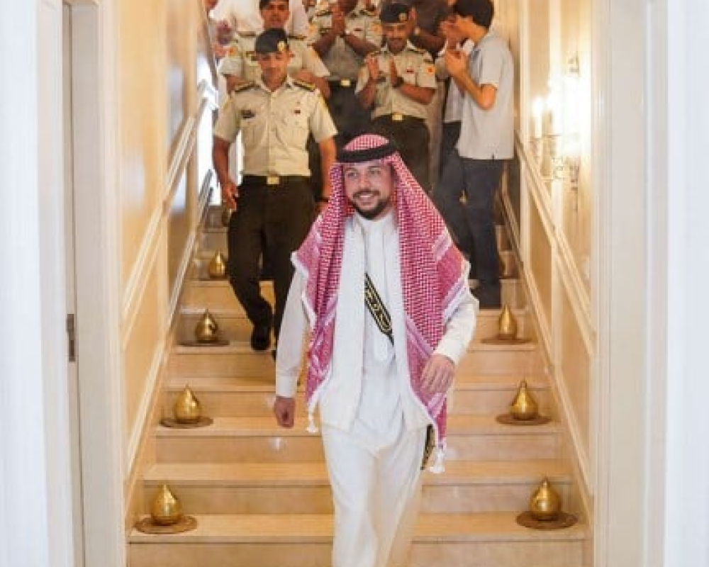 وكان سمو الأمير عمر بن فيصل، أقام الأربعاء، حمام العريس لسمو الأمير الحسين ولي العهد، بمشاركة عدد من أقارب ورفاق سموه في القوات المسلحة في منزل سمو الأمير فيصل، قبيل التوجه إلى مأدبة العشاء التي أقامها جلالة الملك في مضارب بني هاشم.