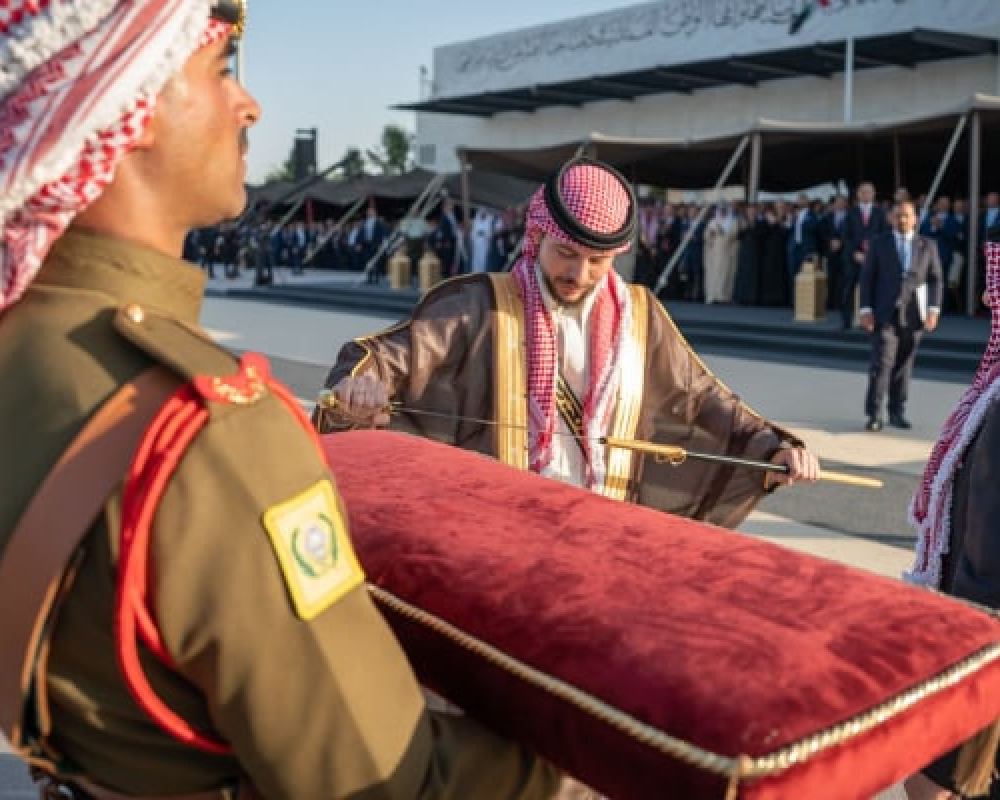 ووصل ولي العهد إلى مضارب بني هاشم وهو يرتدي اللباس العربي التراثي القديم الذي يشكل موضع اعتزاز وافتخار للأردنيين.