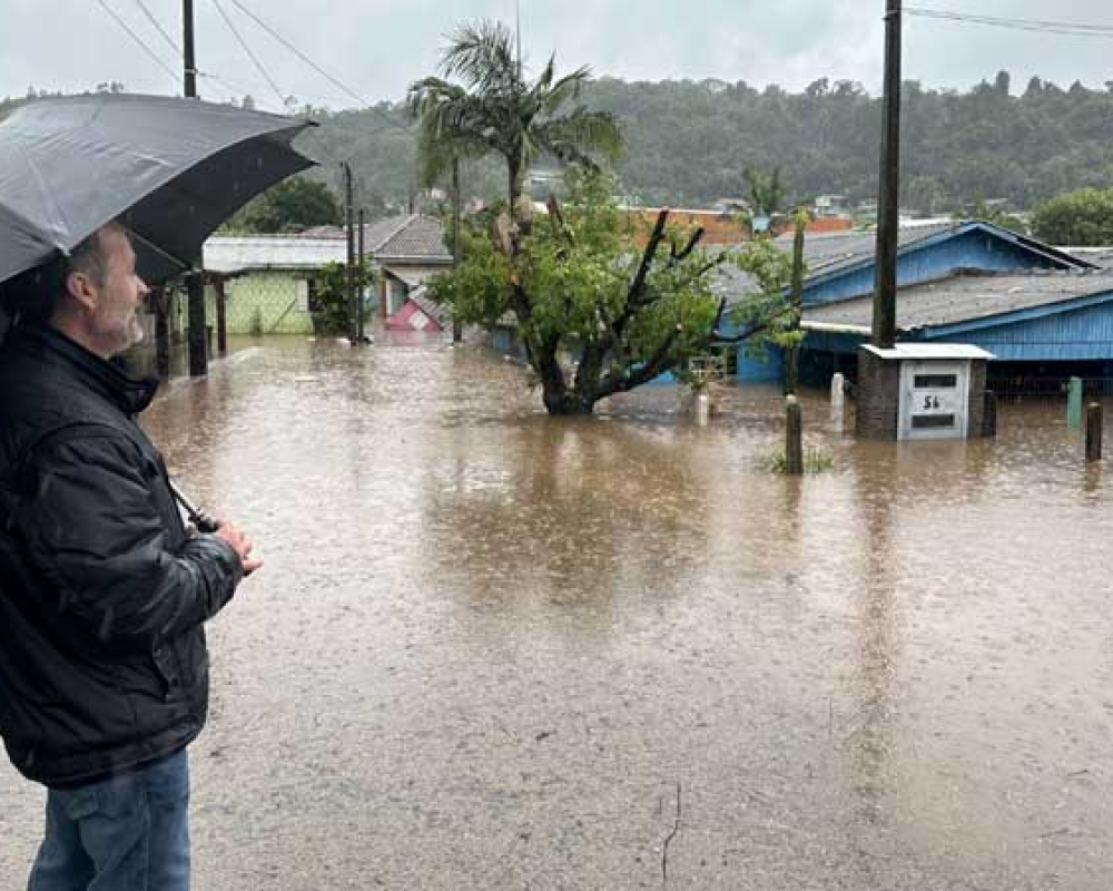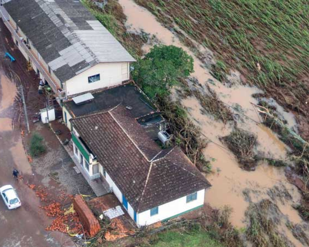 والأحد كانت المياه لا تزال تغمر شوارع مدن نوفو هامبورغو وليندولفو كولور وساو ليوبولدو، فيما دُمِّرت منازل وغرقت مركبات جزئيا. وعندما توقف المطر، تمكن جنود من تنفيذ عمليات إنقاذ في نوفو هامبورغو.
