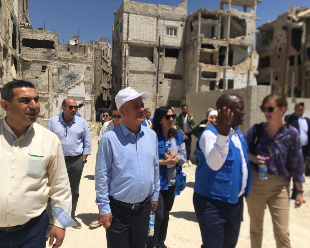 كما اطلع مدير عمليات الاونروا في سوريا امانيا أيبيي على سير العمل في إعادة اصلاح مجمع الاونروا الإداري، والمركز الصحي واحدى مدارس المخيم التي من المتوقع افتتاحها مع بداية العام الدراسي الجديد بقدرة استيعابية 1600 طالب وطالبة.
