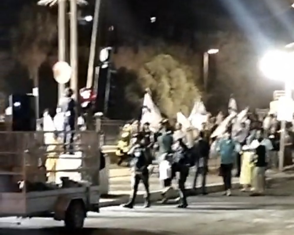ورافق المستوطنين الوزير المتطرف ايتمار بن غفير، حيث تجمعوا في البلدة القديمة بالقدس للمشاركة في مسيرة الأعلام الاستفزازية.
