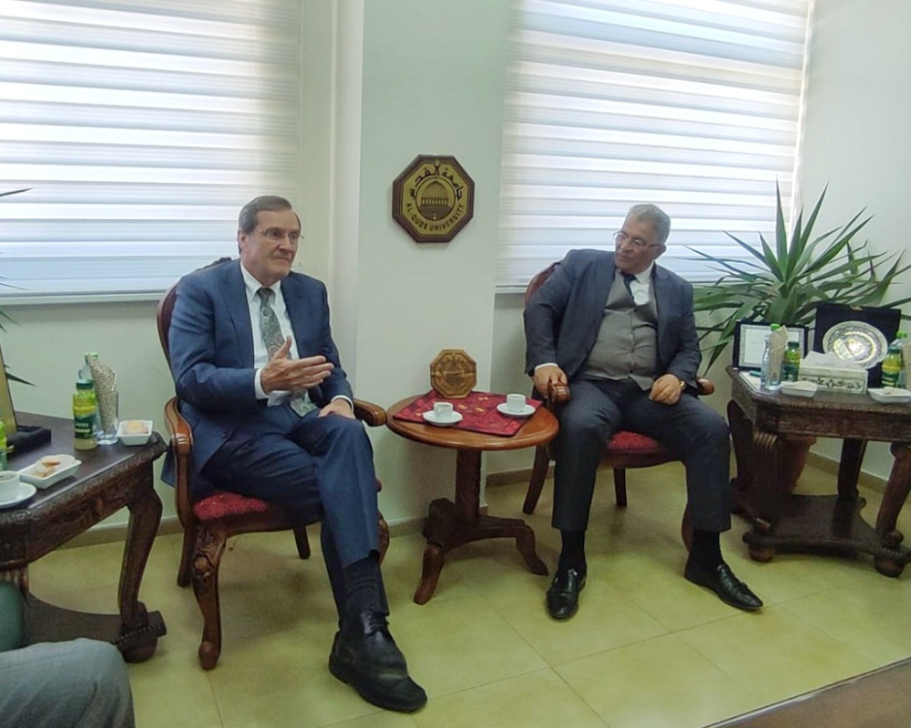 القدس/PNN- استقبل رئيس جامعة القدس أ.د. عماد أبو كشك المحاضر العالمي والمختص في أمراض الفكين البروفيسور جيفري أوكسيون، عميد كلية طب الأسنان في جامعة كنتاكي، بحيث قدم محاضرة علمية حول "أمراض المفصل الفكي الصدغي والآلام الوجهية"، بحضور متخصصين من مراكز طبية وأساتذة الكلية وطلبتها.