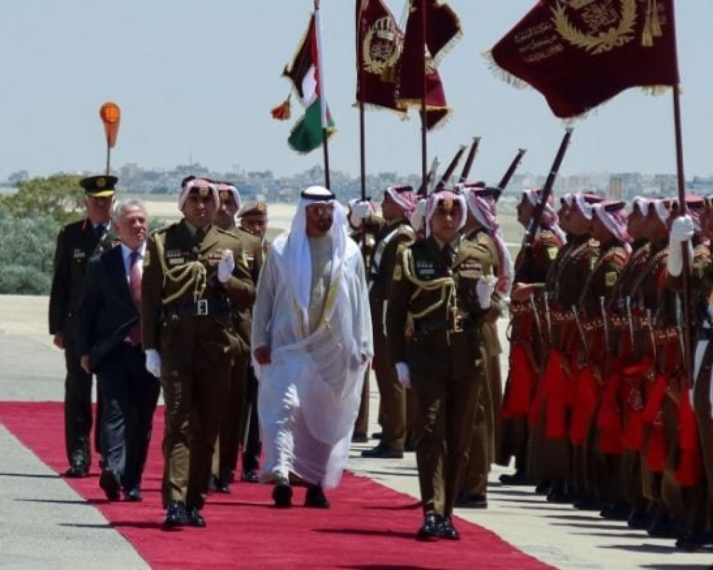 وطبقا للوكالة، رافقت طائرات مقاتلة من سلاح الجو الملكي الأردني طائرة الشيخ محمد بن زايد لدى دخولها أجواء المملكة، ترحيبا بالزيارة.