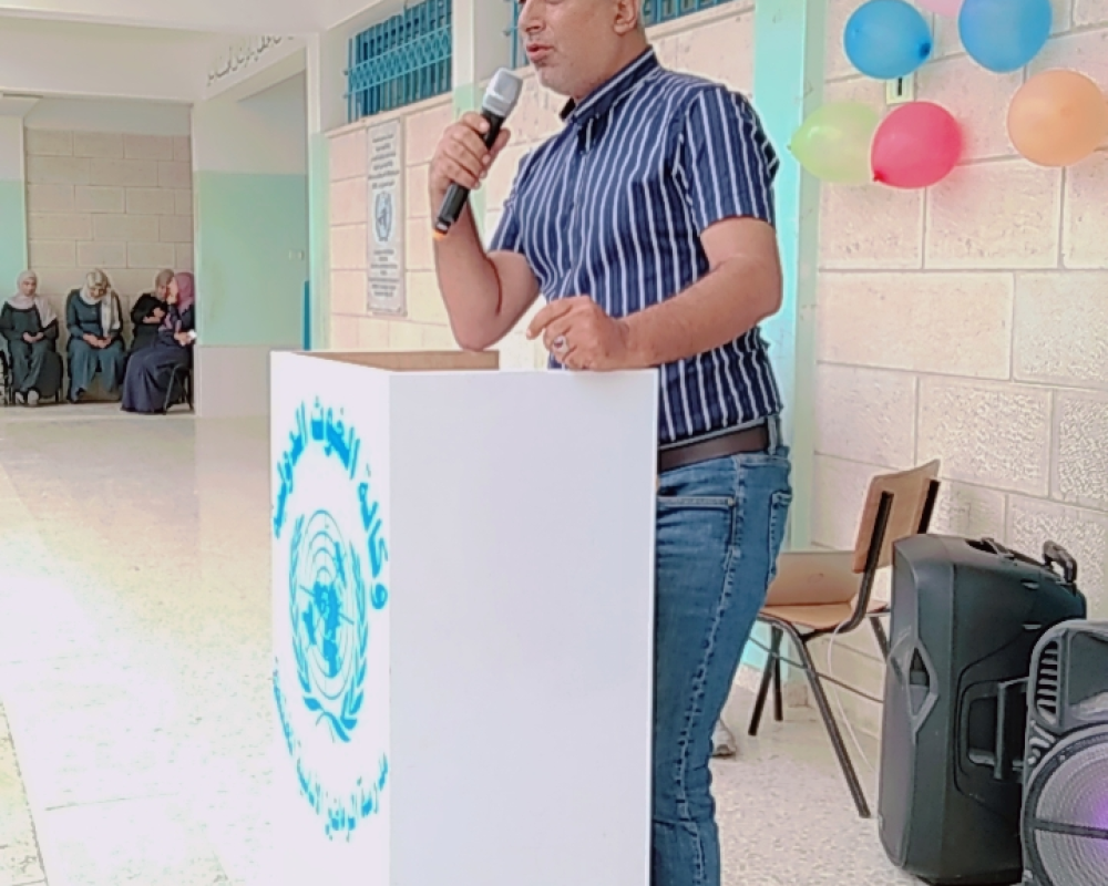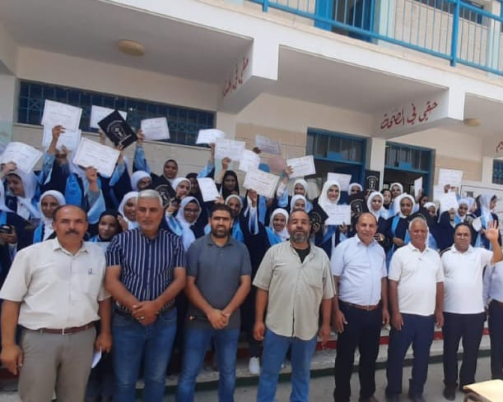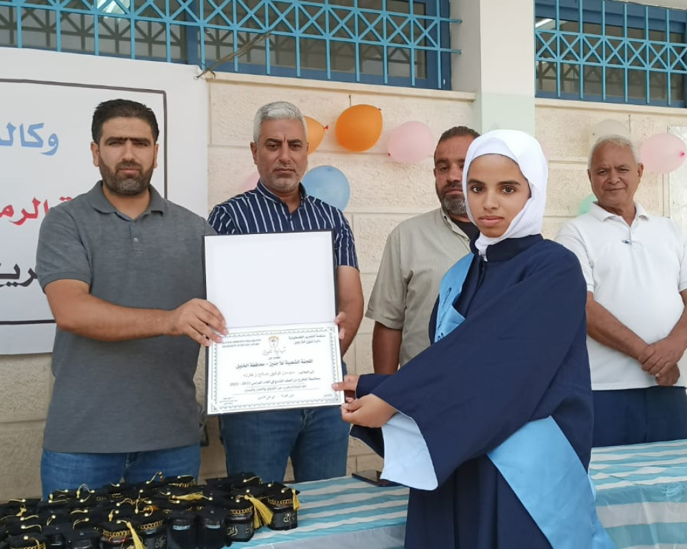 الخليل /PNN / كرمت اللجنة الشعبية لخدمات لاجئي محافظة الخليل طلبة الصف التاسع في مدرسة الرماضين التابعة لوكالة غوث وتشغيل اللاجئين الفلسطينين الاونروا ضمن فعالياتها لتعزيز الانتماء للحقوق الفلسطينية لطلبة المدرسة الذين سينتقلون للدراسة في المدارس الحكومية بالمناطق المحيطة بالمحافظة.