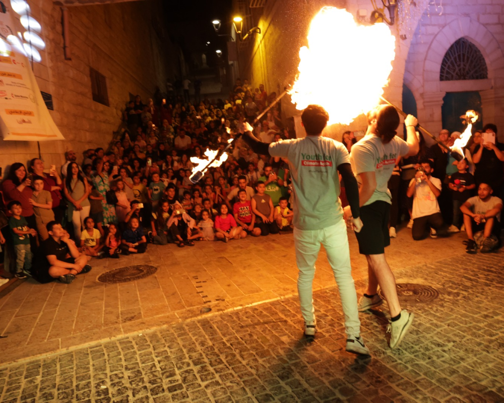 و تم افتتاح السوق بكلمات ترحيبه، من بلدية بيت لحم ومؤسسة آكشن إيد فلسطين والتي أكدت في مجملها على أهمية تعزيز دور الشباب في الاقتصاد الأخضر ودعم مبادراتهم الخضراء التي تصب في حماية البيئة والأرض الفلسطينية والحفاظ عليها وتساهم في مكافحة الآثار السبية للتغير المناخي كما الفعاليات شملت على عرض من مدرسة سيرك فلسطين وعرض للمهرجين وورشات عمل بيئية لإعادة التدوير بالتعاون مع سلطة جودة البيئة وفقرات فنية للفنانين إبراهيم ومحمد أبو لين .