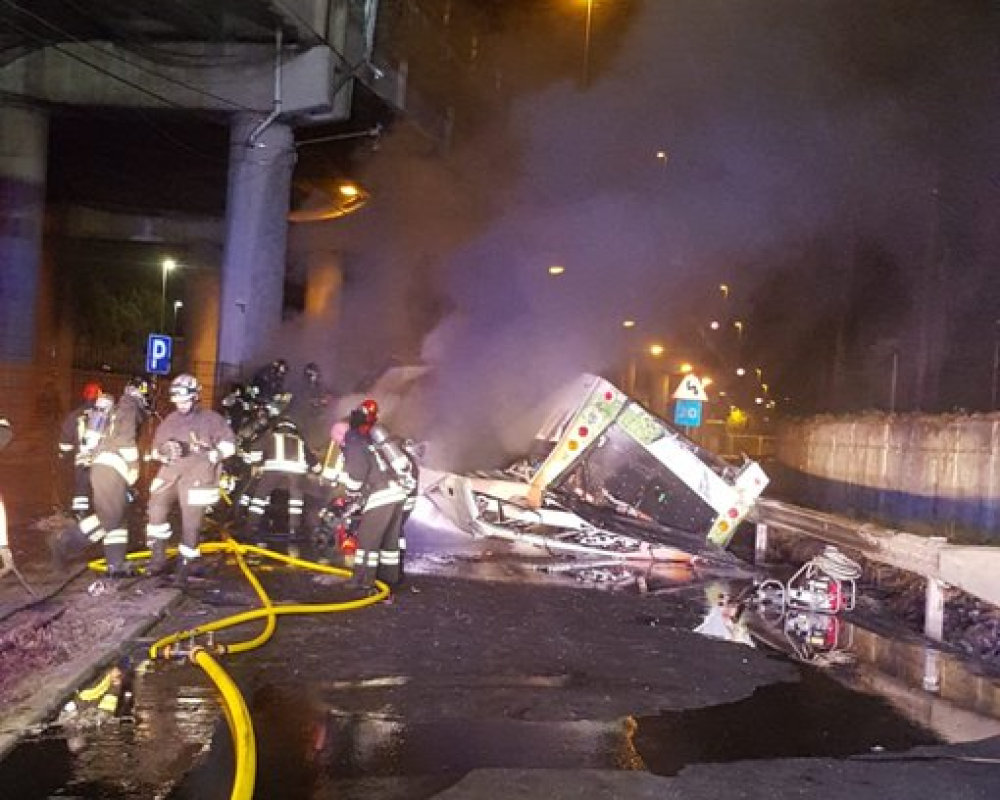 وبحسب أجهزة الإطفاء “اشتعلت النيران” في الحافلة بعدما سقطت من على جسر يربط بين منطقتي ميستري ومارغيرا.