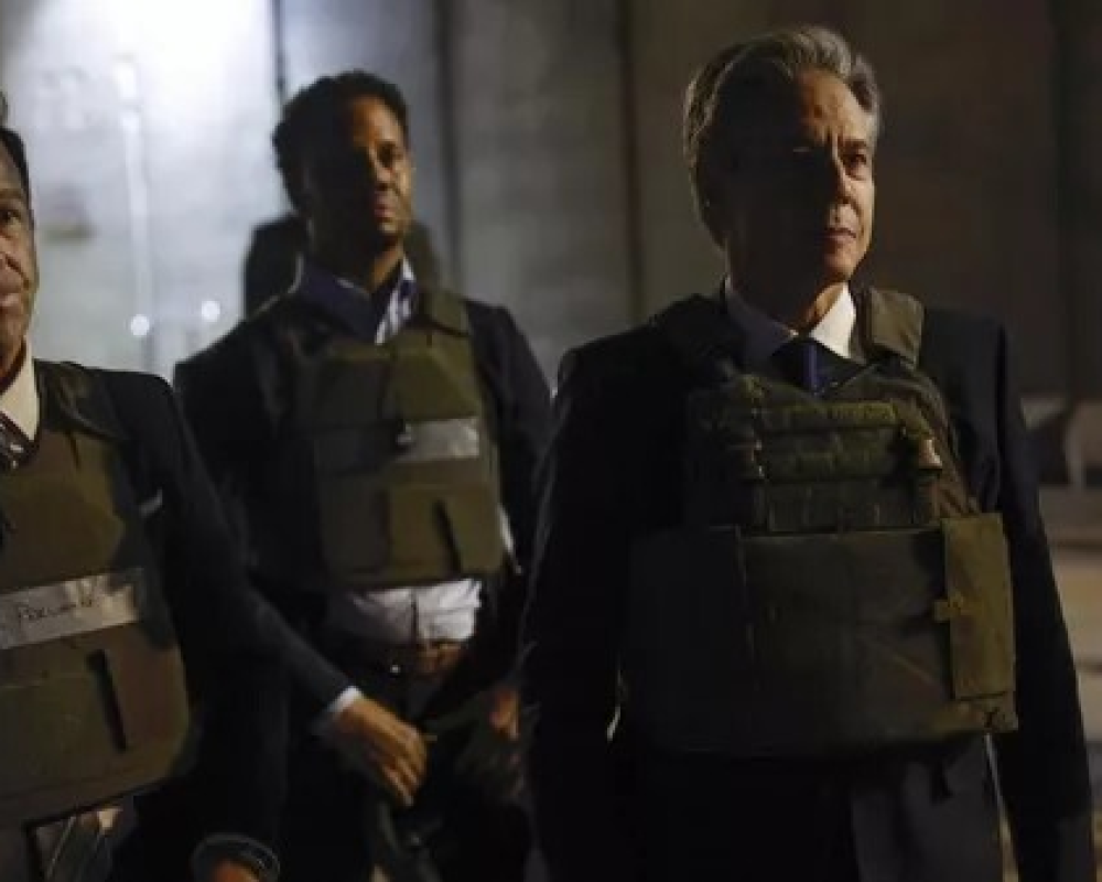 الموقف اللافت، ارتداء بلينكن سترة واقية من الرصاص خلال زيارته المفاجئة إلى العراق في إطار جولته الشرق أوسطية.