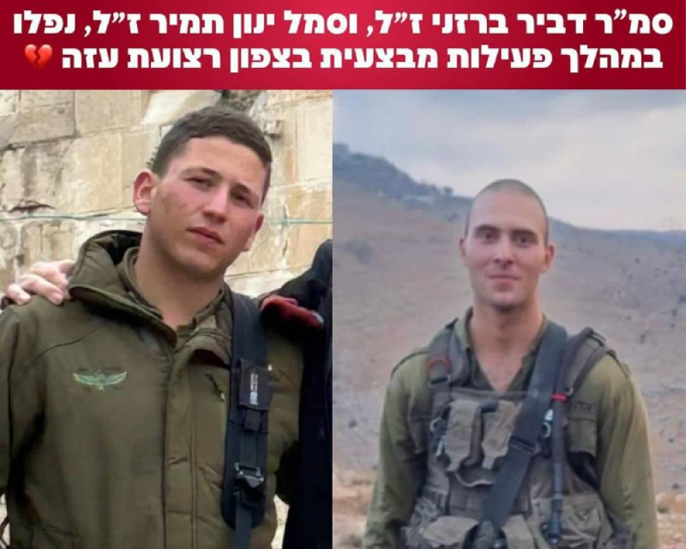 وقال الجيش في بيان له إنه سمح بنشر اسمي الجنديين اللذين سقطا خلال العمليات في شمال قطاع غزة، وهما الرقيب دفير بارزاني، 20 عاما من القدس، المقاتل في الكتيبة 890 من لواء المظليين، والمقاتل في نفس الوحدة الرقيب ينون تامير (20 عاما) من برديس حنا كركور.