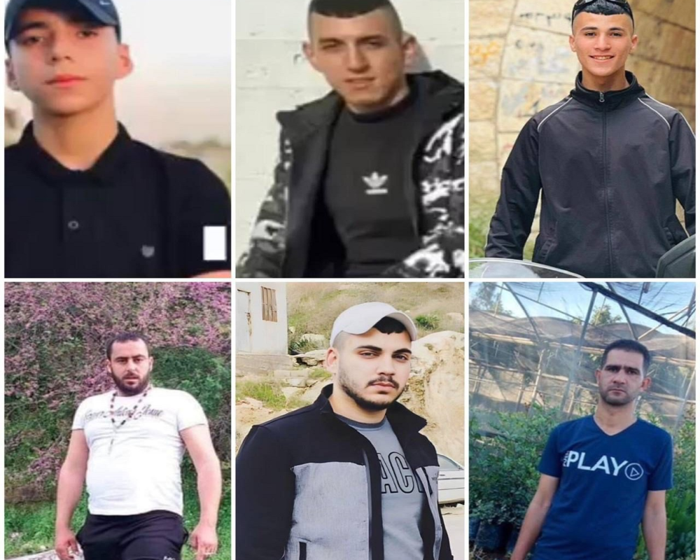 وأفادت وزارة الصحة، باستشهاد ستة مواطنين، هم: الطفل ماهر عبد الله أحمد جوابرة (14 عاما)، وعمر باسم محمود صبح (23 عاما)، وعماد نهاد خالد جوابرة (18 عاما)، وقاسم محمد مصطفى دراغمة (33 عاما)، وثائر عبد الله شاهين (36 عاما)، وبراء موسى الأمير (30 عاما).