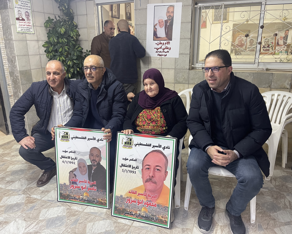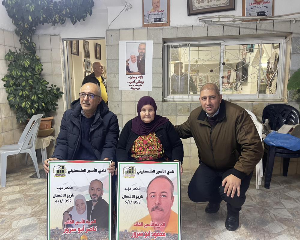 واكد الزغاري ان الزيارة اليوم تمثل لمسة وفاء للاخوة القادة في السجون الاسيران ناصر ومحمود ابوسرور في ظل غيابهم القسري نتيجة عنصرية الاحتلال الذي يمارس شتى انواع التعذيب والاستهداف للاسرى مشددا على ان كل الكلمات تعجز عن الحديث عن صبر ومعاناة مزيونة واشقاء محمود و والدته التي قضت سنوات عمرها منذ ٣٢ عاما وهي تتنقل بين السجون وهي تحمل رسالة امل بالافراج عن ناصر وكل الاسرى حيث تمثل في رحلة صمودها امهات الاسرى جميعا.
