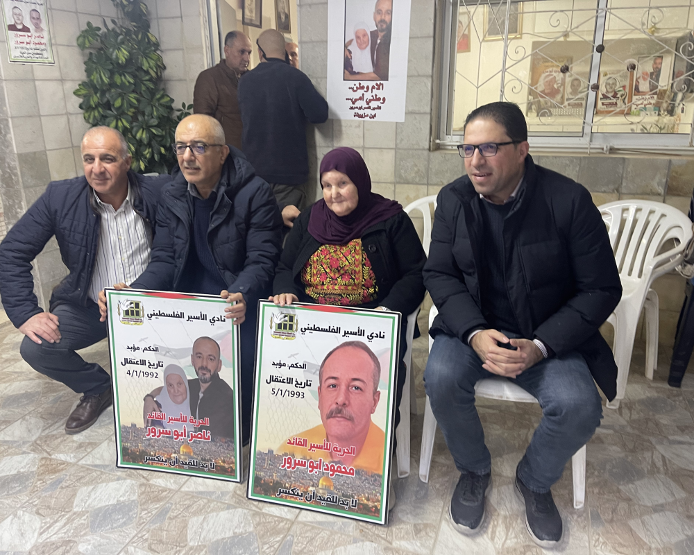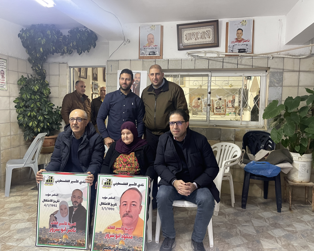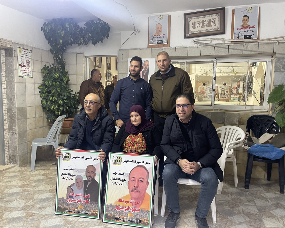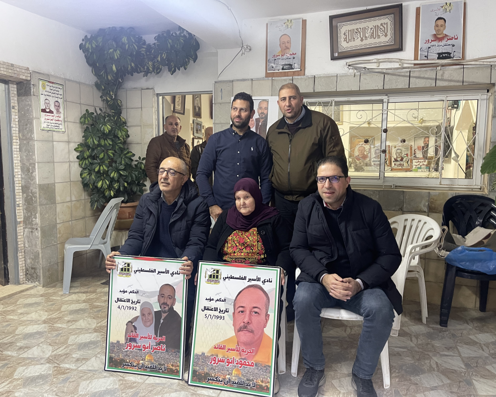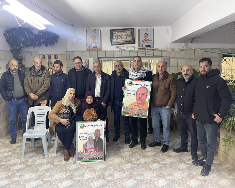 بيت لحم /PNN / زار وفد من مؤسسات الاسرى في محافظةبيت لحم واعضاء المجلس الثوري لحركة  فتح منزلعائلة الاسيرين ناصر ومحمود ابو سرور بمناسبةدخولهم ٣٢ عام على اعتقالهم في سجون الاحتلال الاسرائيلي حيث التقوا بوالدة الاسير ناصر مزيونة واشقاء الاسير محمود ابو سرور مصطفى واحمد وعبروا عن تضامنهم و وفائهم مع الاسرى القادة.