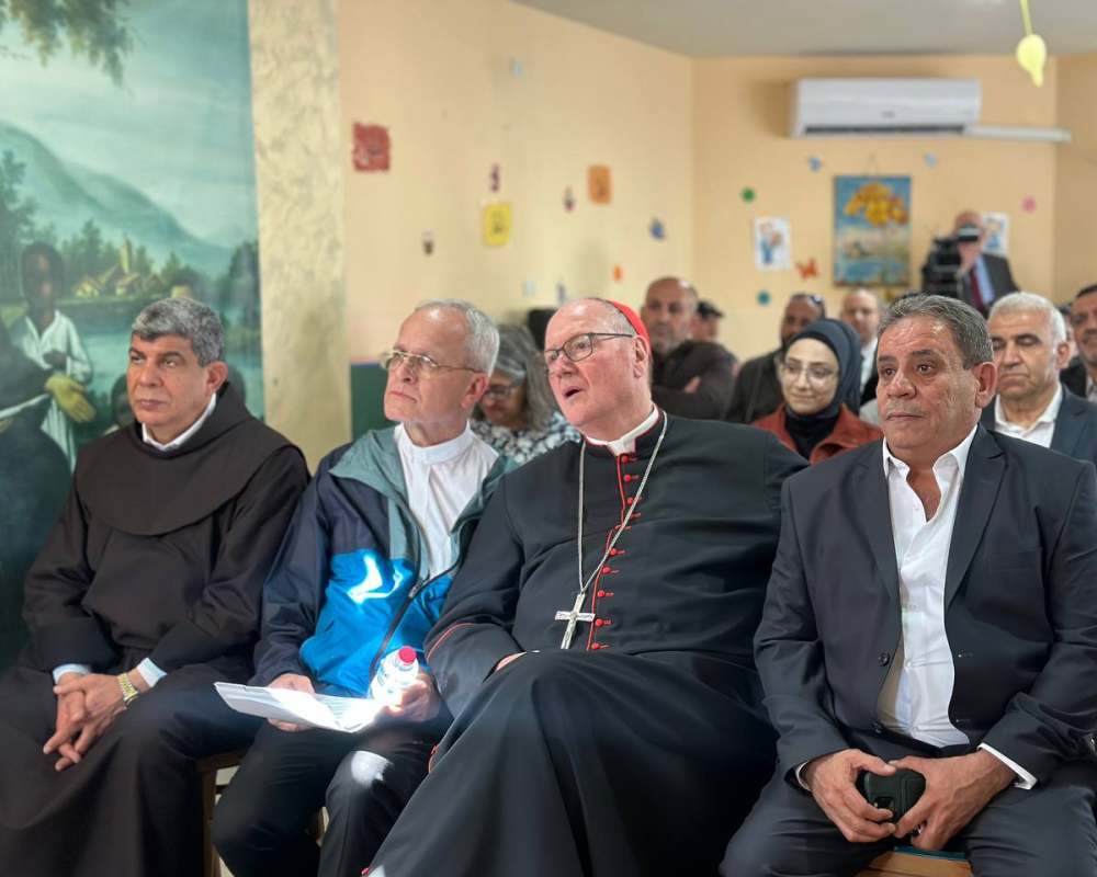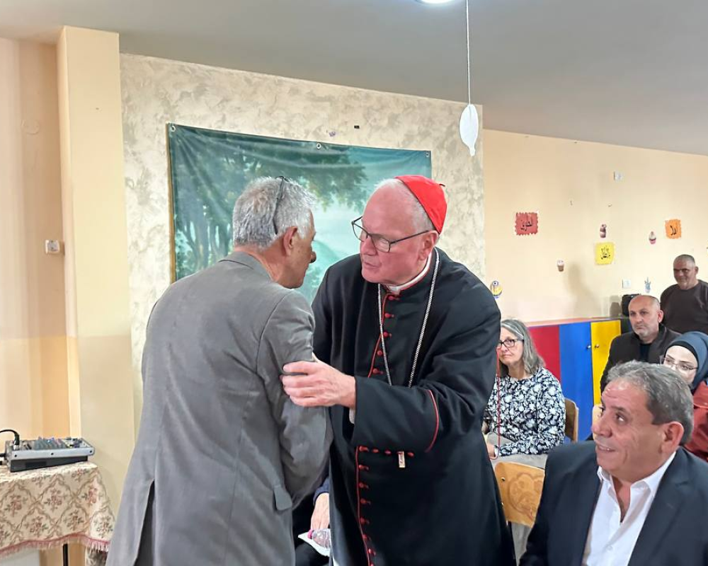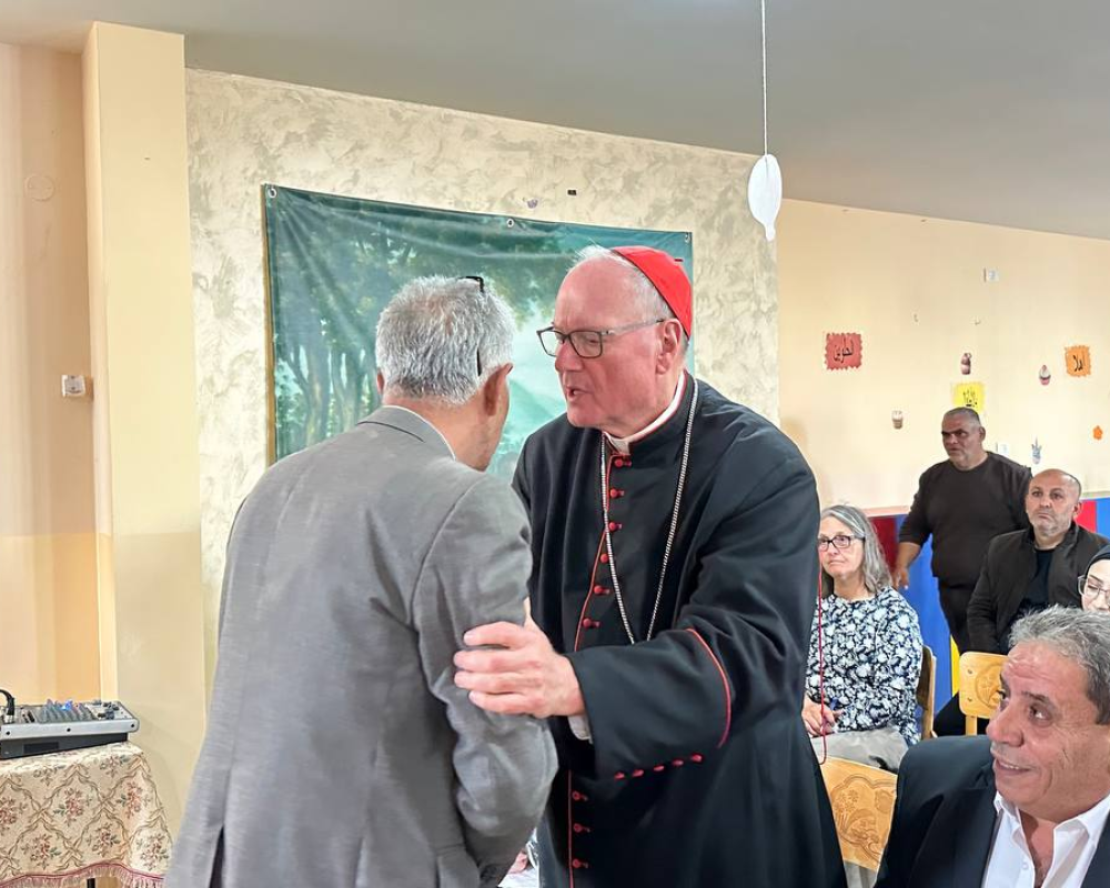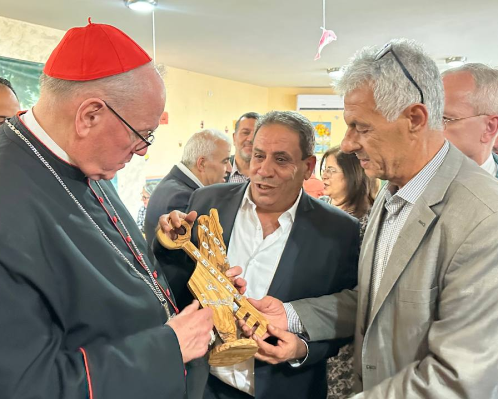و شكر المحافظ الكاردينال تيموثي دولان رئيس اساقفة نيويورك رئيس البعثة البابوية في فلسطين مشددا على ان لهذه الزيارة وبمناسبة مرور ٧٥ عاما لبيت لحم ومخيم اللاجئين له دلالات بوقوف البعثة مع الحقوق الفلسطينية وعلى راسها حق العودة معربا عن اعتزازه بمؤسسة البعثة كونها مؤسسة عريقة تعمل في فلسطين لمساعدة ابناء شعبنا جميعا مضيفا ان الجميع مستهدفين كمسلمين ومسيحيين من قبل هذا الاحتلال الذي يستهدف وجودنا وحقوقنا وما هذا الجدار القريب منا و الجاثم على اراضي بيت لحم الا دليل على الاستهداف لكل الفلسطينيين.
