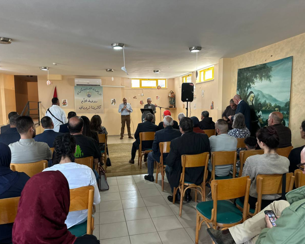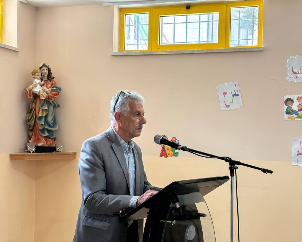 و تحدث العزة عن اهمية عمل و تفعيل البعثة البابوية التي يقدرها اهالي المخيم ويعلم كافة اهله ما قدمته البعثة البابوية التي تتعاون مع مختلف المؤسسات في المخيم كما ان هذا الدير والروضة هو احد نماذج هذا التعاون تلذي نامل ان يكبر ويستمر.