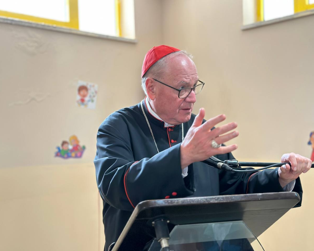 وقال الكاردينال نحن هنا في بيت لحم و نشكر الله على وجودنا في ذكرى تاسيس البعثة معربا عن سعادته بسماع الكلمات التي تحدث بها رئيس اللجنة الشعبية في مخيم عايدة ومحافظ بيت لحم التي يعلنون فيها معرفتهم بسبب وجودنا هنا ودعمنا للمجتمع.