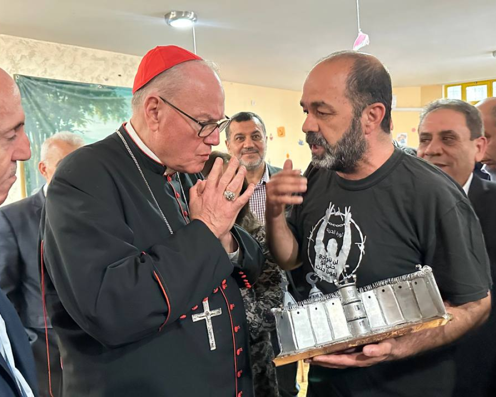 من ناحيته رحب المحافظ ابو عليا بالكاردينال على ارض مدينة مهد السيد المسيح بيت لحم مشيرا الى ان زيارته لمخيم عايدة اليوم وحرصه على لقاء جموع اللاجئين يمثل رسالة دعم نعتز بها كفلسطينيين.