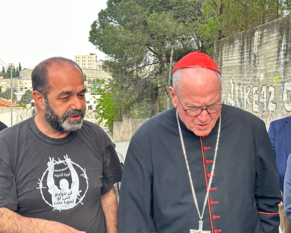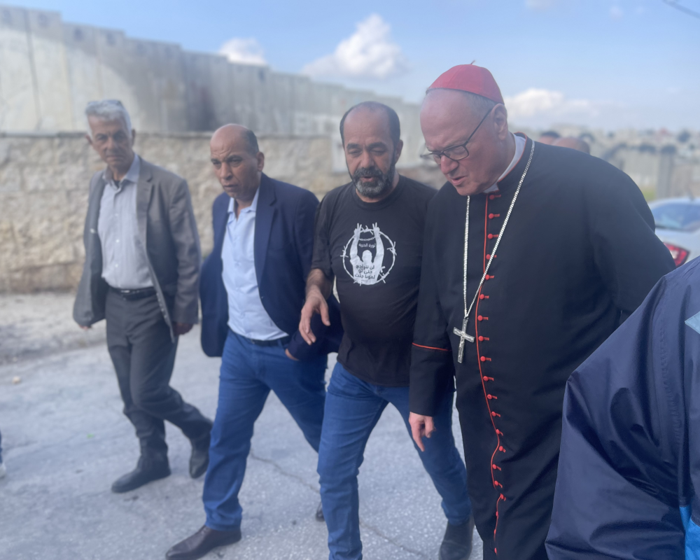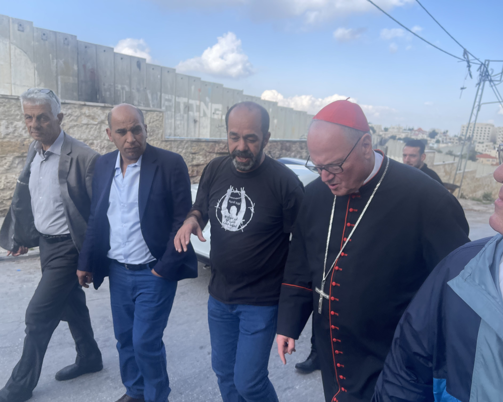 كما قام الحضور باطلاع الكاردينال خلال مغادرته بشكل سريع على واقع بيت لحم تحت الحصار والجدار والاغلاق الذي يضر بكافة مواطني بيت لحم من مسلمين ومسيحيين الذين يعيشون بتآخي ومحبة لمواجهة اجراءات الاحتلال.