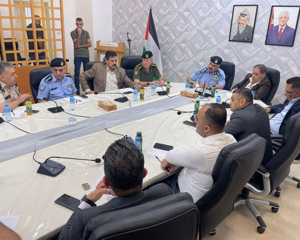 واستمع الحلو من المحافظ ابو عليا وقادة الامن لشرح مفصل عن واقع وحال محافظة بيت لحم وجهود المؤسسة الامنية لفرص حالة الاستقرار والامن ومحاربة كافة الزواهر السلبية من جهة والجهود المبذولة لحماية المواطنين والحفاظ على ممتلكاتهم من الجهة الاخرى على الرغم من العوائق والعقبات التي تعترض العمل على مختلف المجالات.