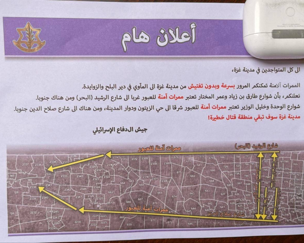 غزة/PNN- ألقى جيش الاحتلال الإسرائيلي، اليوم الأربعاء، مناشير يدعو سكان مدينة غزة للنزوح باتجاه الجنوب.