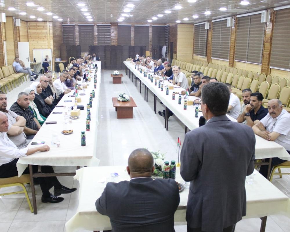 المحافظ دودين في كلمته رحب بالحضور مؤكدا أهمية هذا اللقاء الذي يأتي في ظل ظروف قاسية وانتهاكات يتعرض لها الاسرى أظهرت الوجه الحقيقي للاحتلال الاسرائيلي مشددا اهمية وضع برنامج شامل لإسناد الأسرى وكسر التعتيم الذي تمارسه ادارة السجون للظلم والبطش الذي يتعرض له الأسرى خصوصا بعد أحداث السابع من أكتوبر داعيا جميع مكونات المجتمع الفلسطيني للوحدة والتكاتف لدعم أسرانا في سجون الاحتلال .