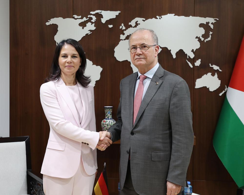 رام الله / PNN / استقبل رئيس الوزراء، وزير الخارجية والمغتربين د. محمد مصطفى، اليوم الجمعة في مكتبه برام الله، وزيرة خارجية ألمانيا أنالينا بيربوك، حيث بحث معها مستجدات الأوضاع في الأراضي الفلسطينية، في ظل استمرار حرب الإبادة على شعبنا في قطاع غزة، واعتداءات جيش الاحتلال والمستوطنين في الضفة الغربية بما فيها القدس.