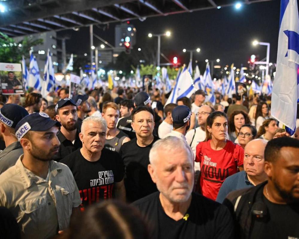 تل أبيب /PNN / تظاهر مئات الآلاف من الإسرائيليين، مساء اليوم السبت، في تل أبيب، لليوم الثامن على التوالي، للضغط على حكومة بنيامين نتنياهو للتوصل لاتفاق وقف إطلاق النار في قطاع غزة وإبرام صفقة تبادل.