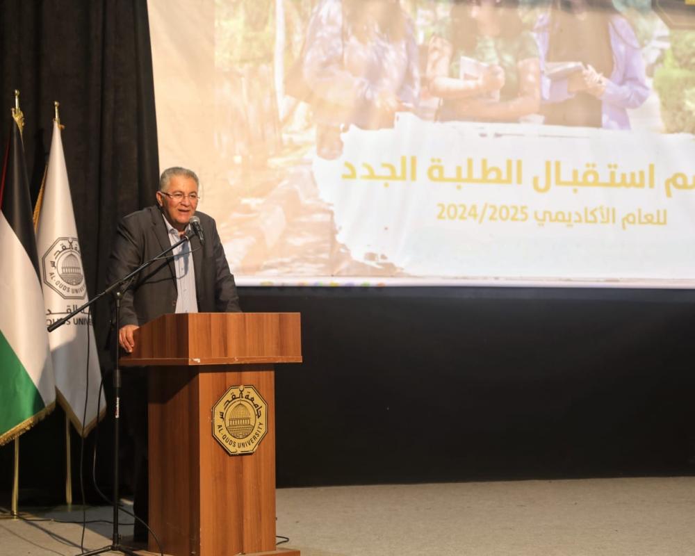 ورحب رئيس جامعة القدس أ.د. أبو كشك بالطلبة الجدد فيكلياتهم المتميزة ابتداءً بالطب البشري التي تحقق تفوقًاعالميًا في جودة التعليم ونسب النجاح في امتحاناتالمزاولة الإسرائيلية وحول العالم، كما يتبوأ خريجوهامناصب رفيعة عالمية في القطاع الصحي والعالمي، ويشكلالملتحقون منهم بالدراسات العليا نسبة فائقة في أعرقالجامعات، مشيدًا بالمستوى المتقدم لكليتي طب الأسنانوالصيدلة وتميز طاقمها الأكاديمي، ومبادرات الطلبةاللامنهجية في جلب نماذج عالمية في الابتكار والإبداع.