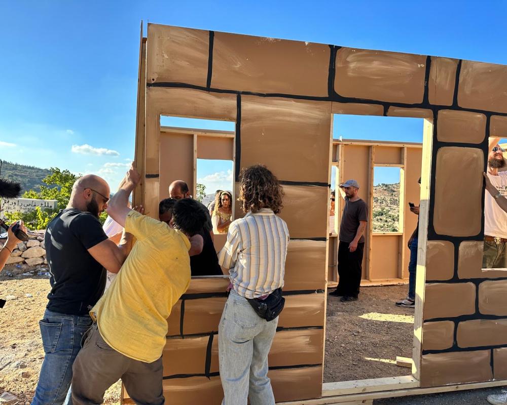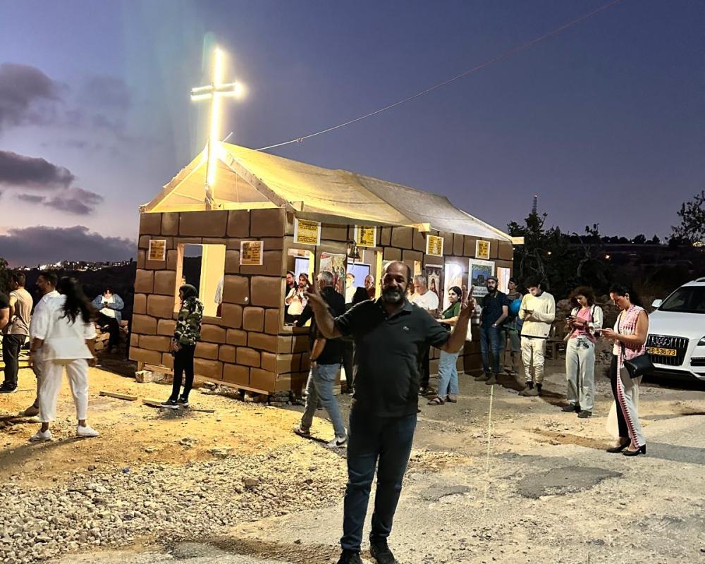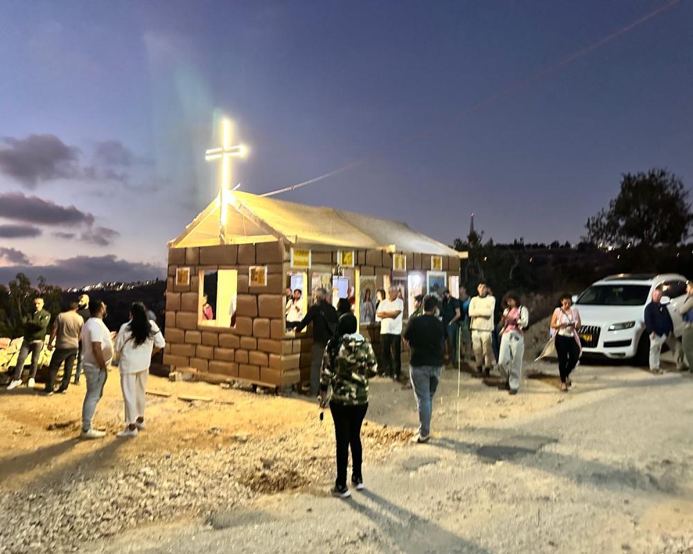 وقام الحضور من نشطاء سلام محليين ودوليين واسرائيل ورجال دين مسيحي وحاخامات داعمين لحقوق الشعب الفلسطيني ببناء الكنيسة ورفع صليب ضخم عليها واضاءته ومن ثم اقامة قداس ديني تراسه الدكتور القس منذر اسحق الذي ادى صلوات خاصة لحماية الارض المقدسة وابناء شعبنا الفلسطيني من الظلم والاضطهاد الذين يتعرضون له جراء ممارسات الاستيطان والمستوطنين المدعومين من حكومة اليمين الاسرائيلي.