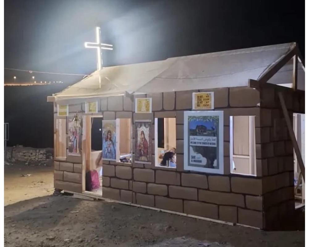 بيت لحم / PNN / في خضم حرب الابادة التي تشنها اسرائيل على الشعب الفلسطيني وارضه ومقدساته وعلى الشعب اللبناني اقام نشطاء المقاومة الشعبية وهيئة مقاومة الجدار والاستيطان ولجنة أصحاب اراضي المخرور مبنى لكنيسة على اراضي عائلة قيسية التي يسعى المستوطنون المتطرفون بدعم من شركة هامانوتا الاستيطانية ودعم من حكومة الاحتلال للسيطرة على هذه الاراضي لاقامة مستوطنة جديدة في اراضي المخرور الى الغرب من بيت لحم.