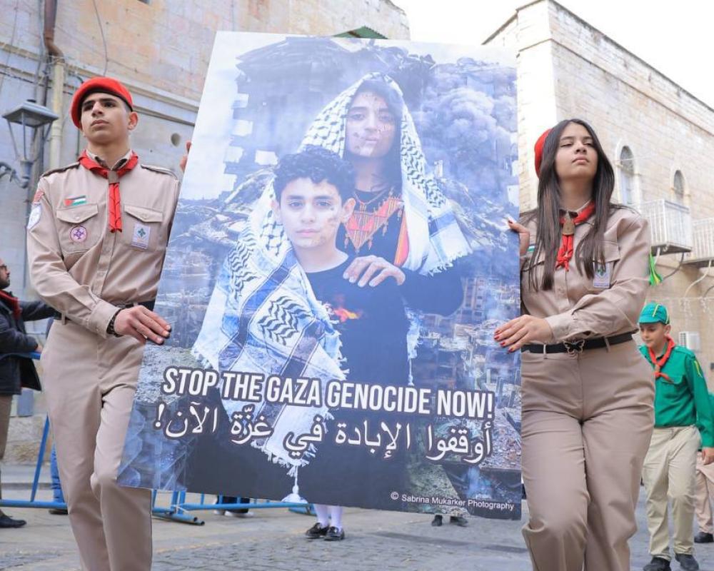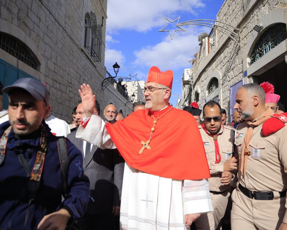 وبعد المصافحة، انطلق الموكب نحو كنيسة المهد مروراً بشارع النجمة. حيث تقدمت الفرق الكشفية موكب غبطته قبل وصوله إلى ساحة المهد، حيث غابت مظاهر الاحتفال التقليدية.