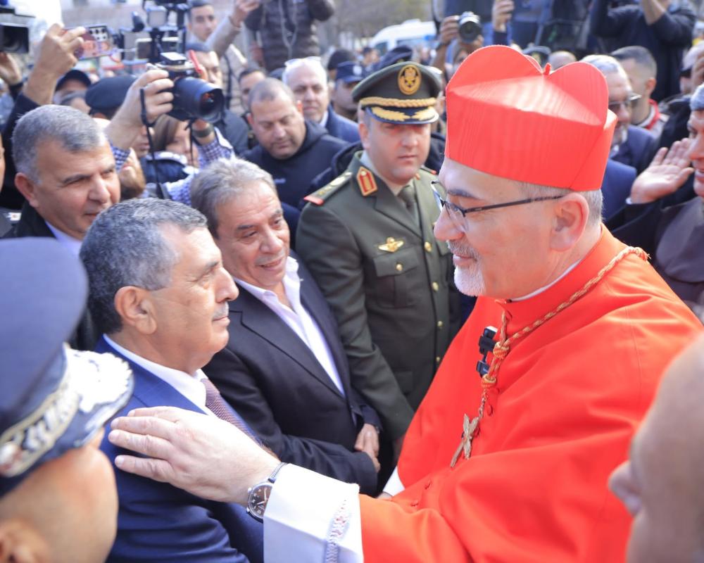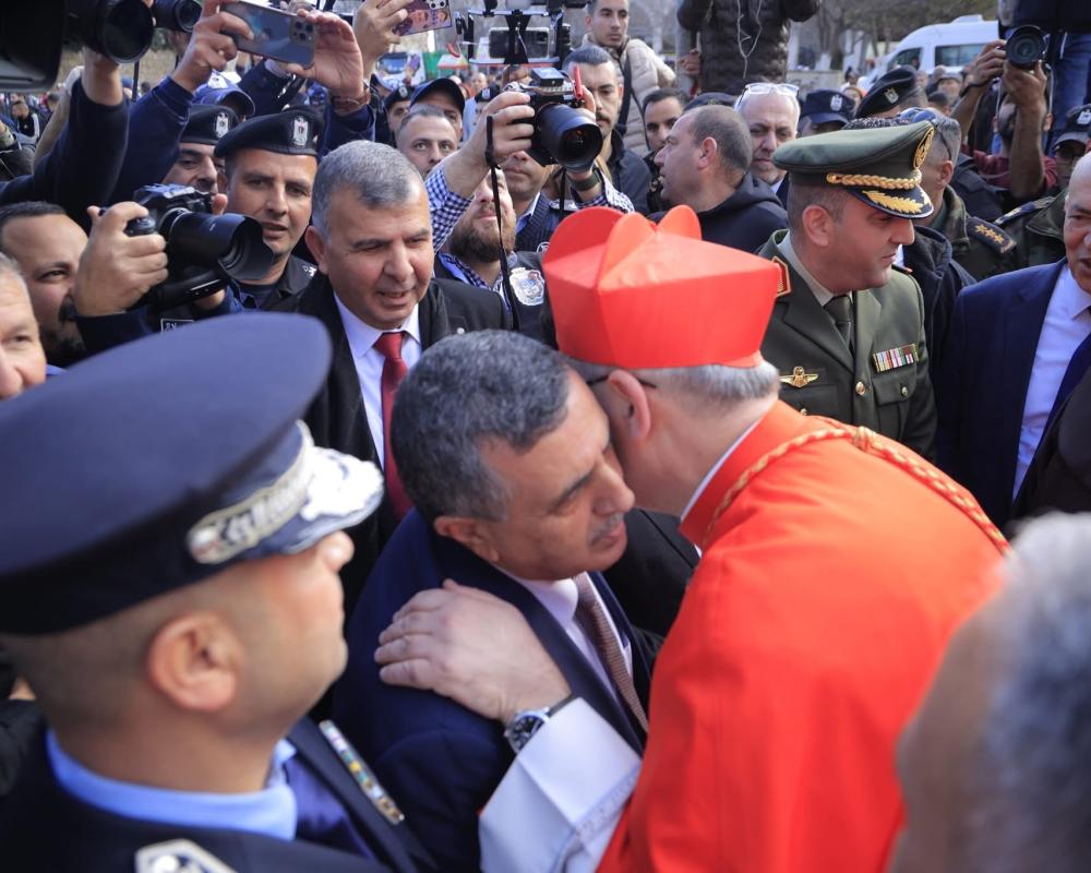 بيت لحم /PNN/ استقبل رئيس بلدية بيت لحم المحامي أنطون سلمان، غبطة البطريرك بيير باتيستا بيتسابالا بطريرك القدس للاتين، لدى وصوله إلى ساحة المهد في مدينة بيت لحم، وذلك يوم الثلاثاء الموافق ٢٤ / ١٢ / ٢٠٢٤. وشارك في الاستقبال عطوفة محافظ بيت لحم السيد محمد طه ابو عليا، ووزير السياحة والآثار السيد هاني الحايك، وقائد منطقة بيت لحم العقيد ركن ابراهيم أبو كشك، ومدير شرطة محافظة بيت لحم العميد مراد قنداح، ونائب حارس الأراضي المقدسة الأب إبراهيم فلتس، وعدد من رجال الدين والشخصيات الوطنية والاعتبارية ووجهاء المدينة.