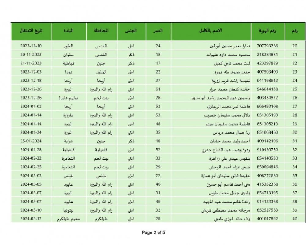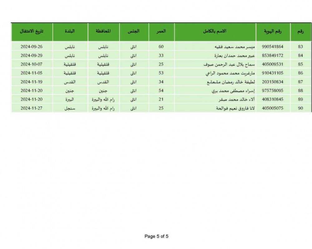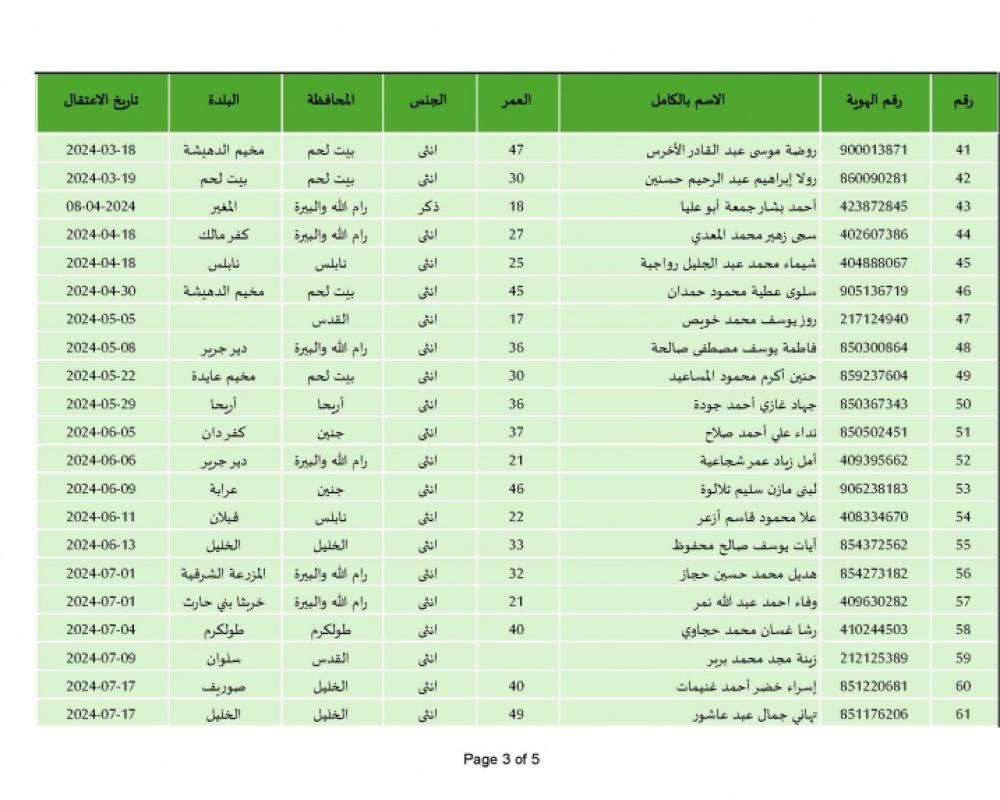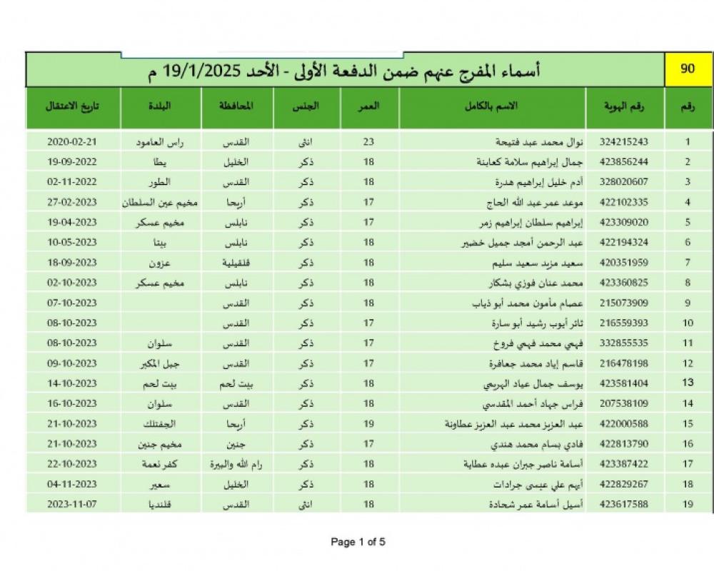 PNN/ فيما يلي قائمة أسماء الأسيرات والأسرى الذين سيفرج عنهم في اليوم ضمن صفقة تبادل الأسرى: