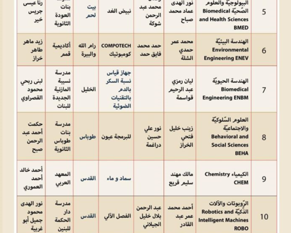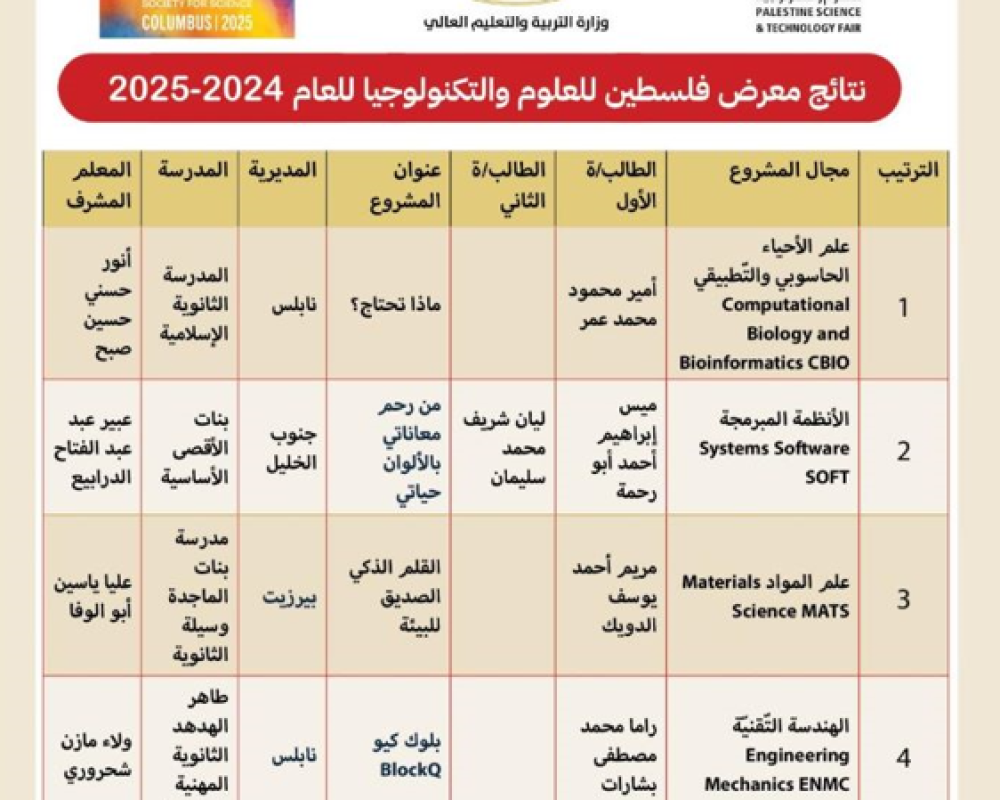 "التربية" تعلن نتائج معرض فلسطين للعلوم والتكنولوجيا للعام 2024/2025