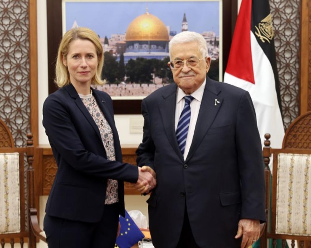 فلسطينيا اشاد الرئيس محمود عباس خلال لقائه بالمسؤولة الاوروبية بمواقف الاتحاد الأوروبي التي عبرت عنها كالاس الداعمة لحل الدولتين، وتولي السلطة الفلسطينية المسؤولية الكاملة في قطاع غزة، ودعم جهود الحكومة الفلسطينية في الإصلاح ودعم تمويلها، بالإضافة إلى دعم وكالة "الأونروا"، وكذلك دعم خطة إعادة اعمار قطاع غزة بوجود أهله.