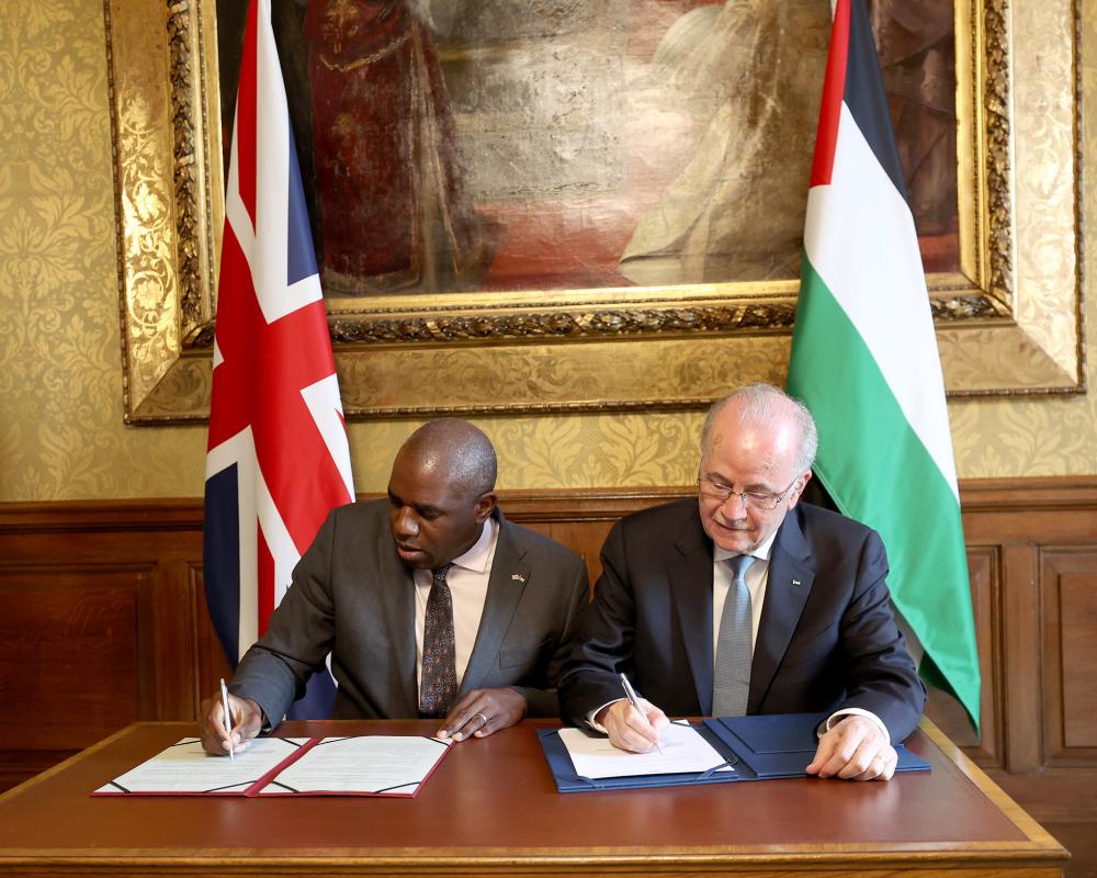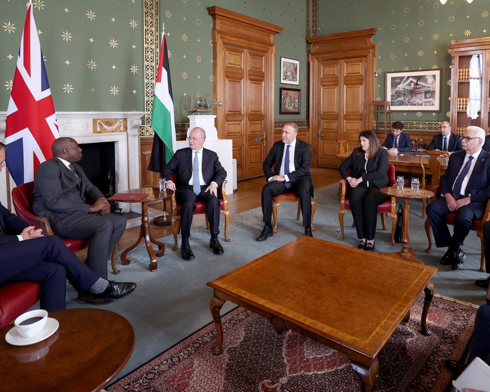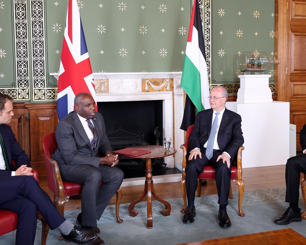 وبحث رئيس الوزراء د. محمد مصطفى خلال لقائه رئيس وزراء بريطانيا كير ستارمر، ووزير الخارجية ديفيد لامي، رفع مستوى العلاقة الثنائية بين البلدين إلى شراكة استراتيجية وتأكيد الالتزام بوجوب حل الدولتين وإنهاء الاحتلال، ناقلا تحيات السيد الرئيس محمود عباس مثمنا الدعم البريطاني المقدم لفلسطين.