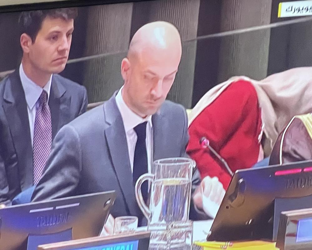 بدوره قال الأمين العام للأمم المتحدة انطونيو غوتيريش ان النزاع الحالي يزعزع الاستقرار في المنطقة والعالم بأسره وإنهاؤه يتطلب إرادة سياسية مضيفا ان الوضع وصل إلى الانهيار وحل الدولتين يجب أن يتحقق معربا عن اسفه كوننا أبعد من أي وقت مضى عن التوصل لحل الدولتين.