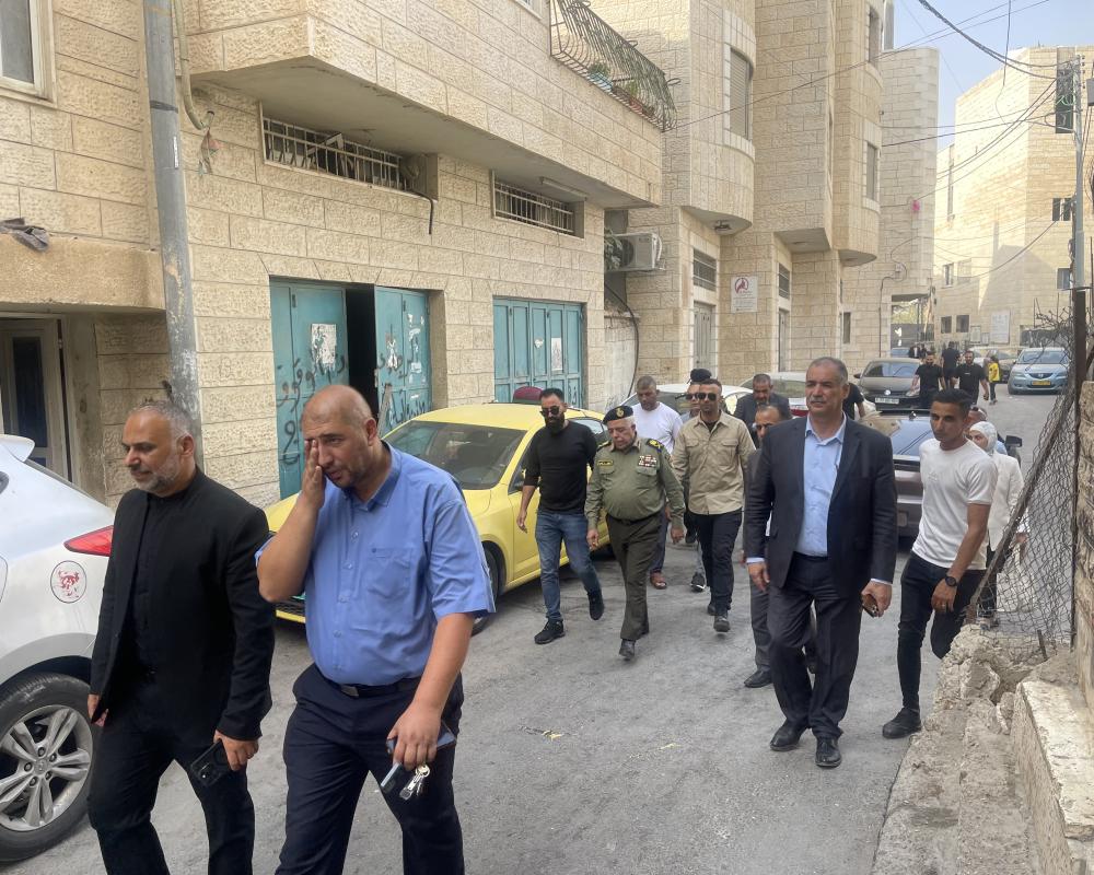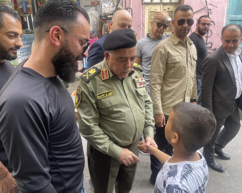 بيت لحم /PNN / زار اللواء انور رجب مفوض هيئة التوجيه السياسي والمعنوي والناطق الرسمي لقوى الامن الفلسطينية و وفد من الهيئة مخيم عايدة للاجئين الفلسطينيين في اطار زيارته لبيت لحم.