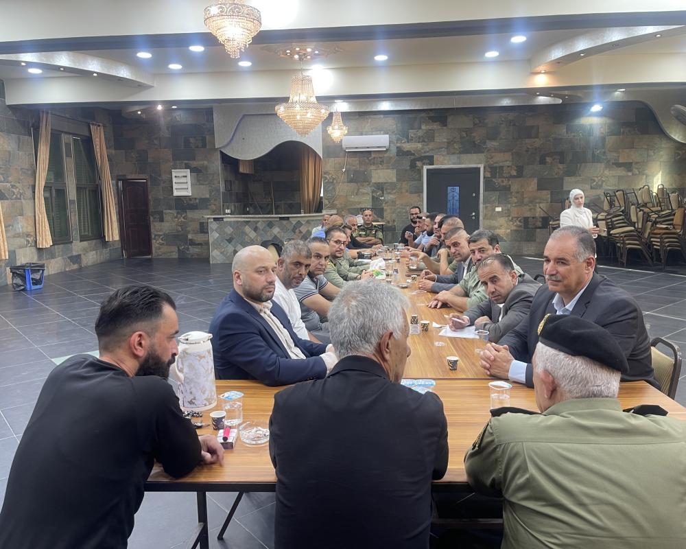 وفي بداية اللقاء رحب العزة باللواء رجب والوفد المرافق له واشار الى واقع ومعاناة المخيم بالحضور و اكد على اهمية الشراكة ما بين المجتمع الفلسطيني وقوى الامن مشددا على صعوبة اوضاع المخيمات السياسية والاقتصادية والاجتماعية نتيجة الاستهداف الاسرائيلي.