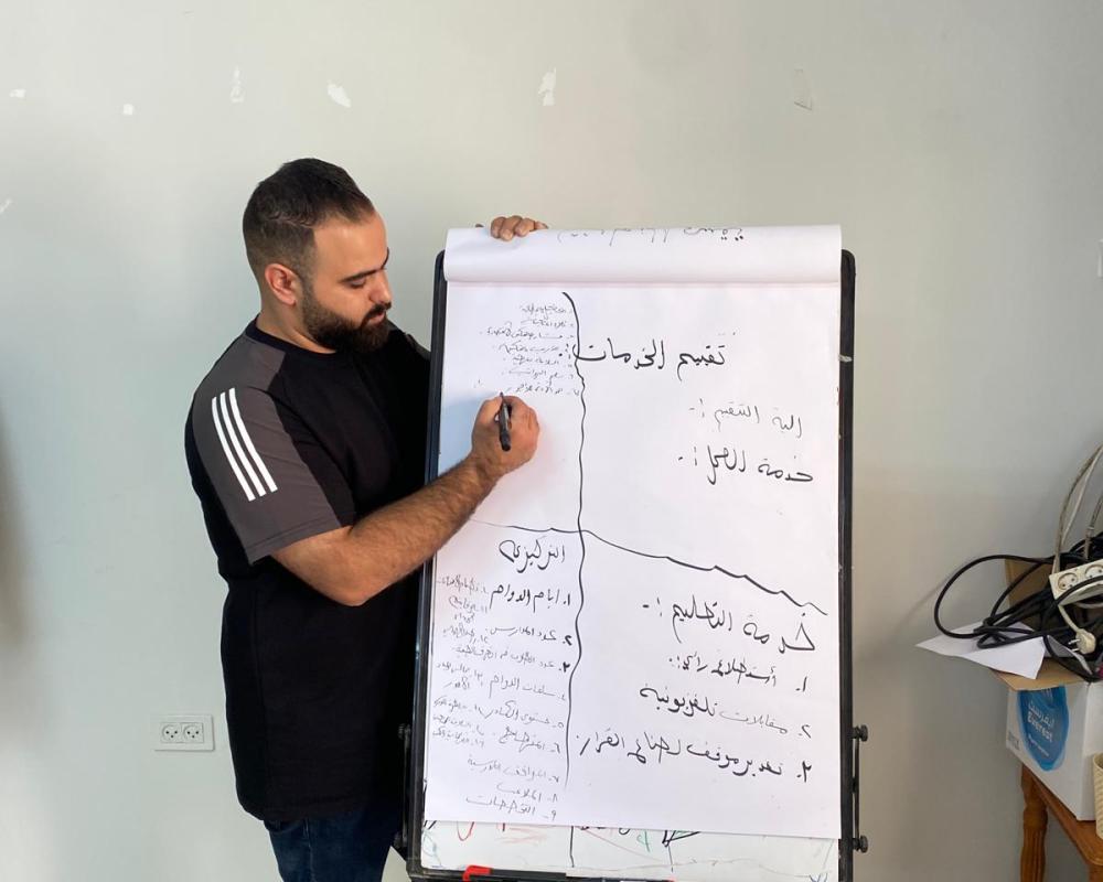 وعقب ذلك تم تقديم شرح عن الانشطة الاعلامية المتوقعة من المشروع حيث جرى اقتراح عدد من خدمات الوزارات وتم التصويت عليها مابين المتطوعين وتم اقرار اجراء استطلاعات لخدمات العمل والتربية والتعليم حيث تم مناقشة المواضيع والاسئلة التي سيناقشها استطلاعا الراي بشانهما واليات الاستطلاع والفئات والمناطق التي ستشمل في العمل.