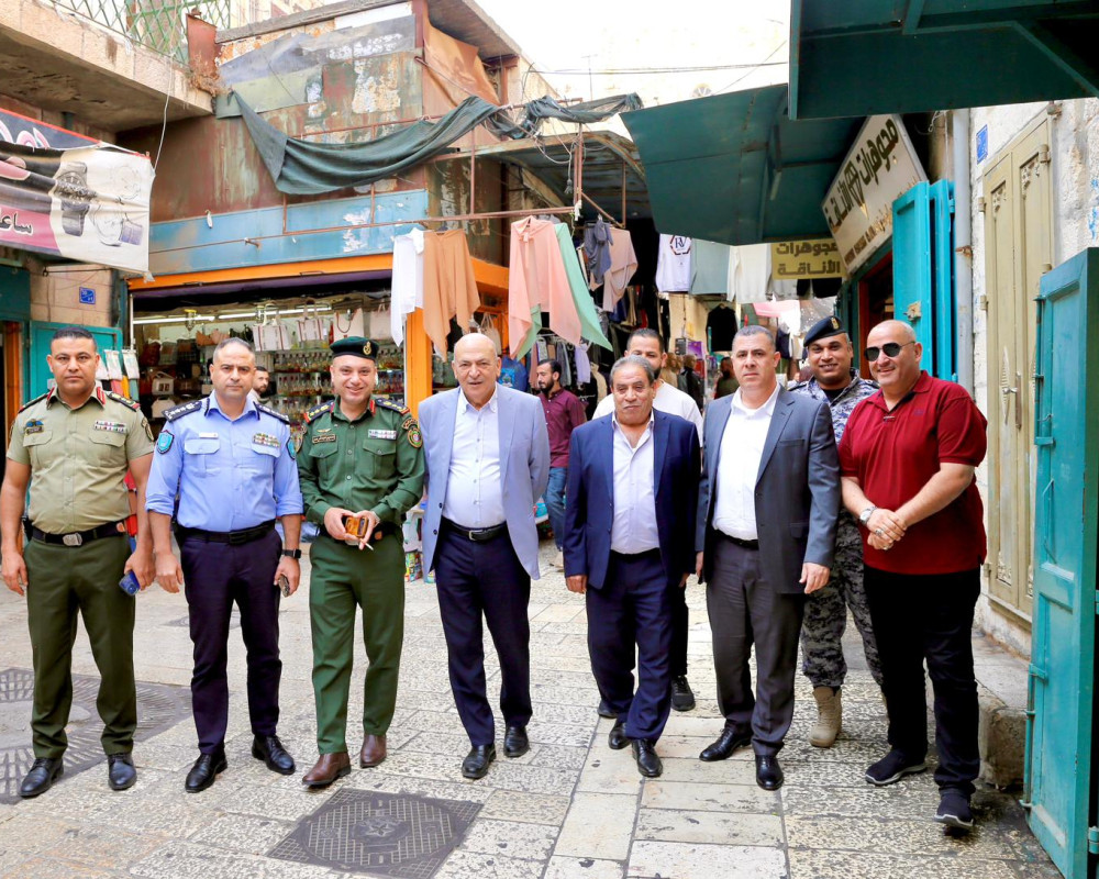 وجرت الجولة بحضور وزير السياحة والاثار هاني الحايك ومحافظة محافظة بيت لحم محمد طه ورئيس بلدية بيت لحم ماهر قنواتي ومدير عام شرطة محافظة بيت لحم العميد مراد قنداح ومدير جهاز الامن الوقائي العميد محمود صلاحات ونواب قادة مختلف الاجهزة الامنية حيث شملت الجولة التفقدية ارجاء مدينة بيت لحم ضمن استعدادات المدينة لاعادة استقبال الافواج السياحية بعد ان توقفت طول فترت الحرب الاخيرة وضمن الاستعدادات للاحتفالات بعيد الميلاد المجيد واضاءة شجرة الميلاد.