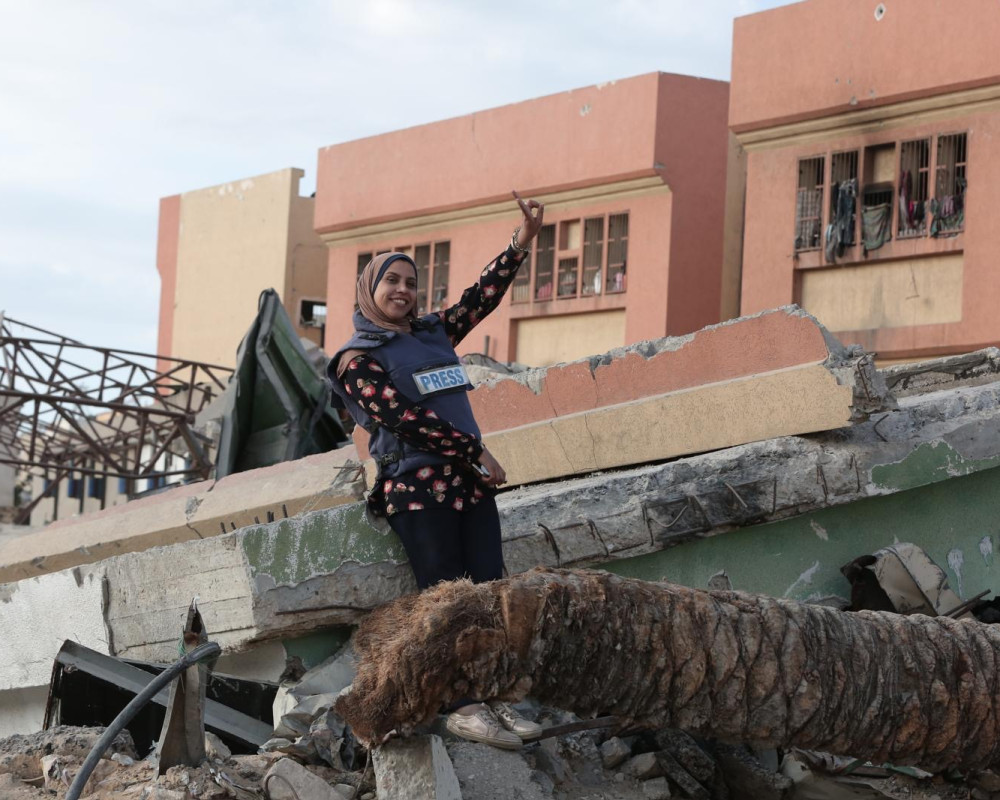 "تحديات مضاعفة ، مع اشتداد القصف واقترابه من منزلي في حي الرمال الغربي منطقة البلاخية ، اضطررت للنزوح من المنزل ، ولكن ما من ملجأ ، لذلك نمت في الشارع بالقرب من مستشفى الشفاء " هذا ما قالته صابرين عن ما واجهته خلال تغطيتها الاحداث في غزة .