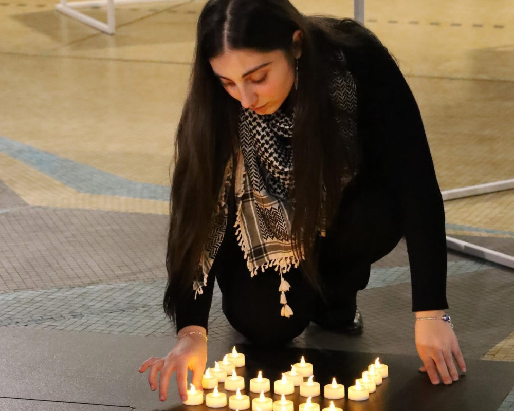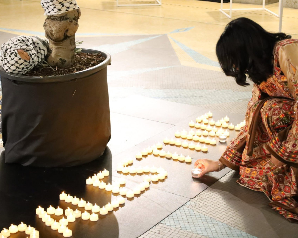 وكان المشاركون قد أضاءوا شموعًا تحت شجرة زيتون تزيّنت بالكوفية الفلسطينية، في إشارة رمزية إلى صمود شعبنا وتجذّره في أرضه، والارتباط العميق بثرى الوطن وقرانا الممتدة عبر التاريخ. وقد جسّد هذا المشهد لحظة تضامن وتأمل عبّرت عن وحدة الشعور تجاه فلسطين، وعن الأمل الراسخ بتحقيق العدالة والسلام.