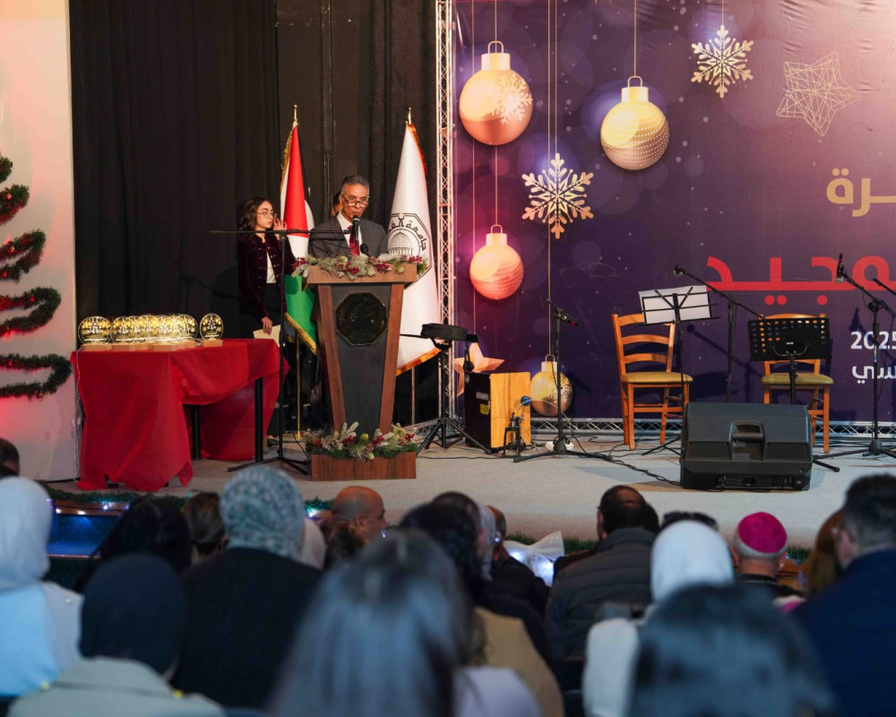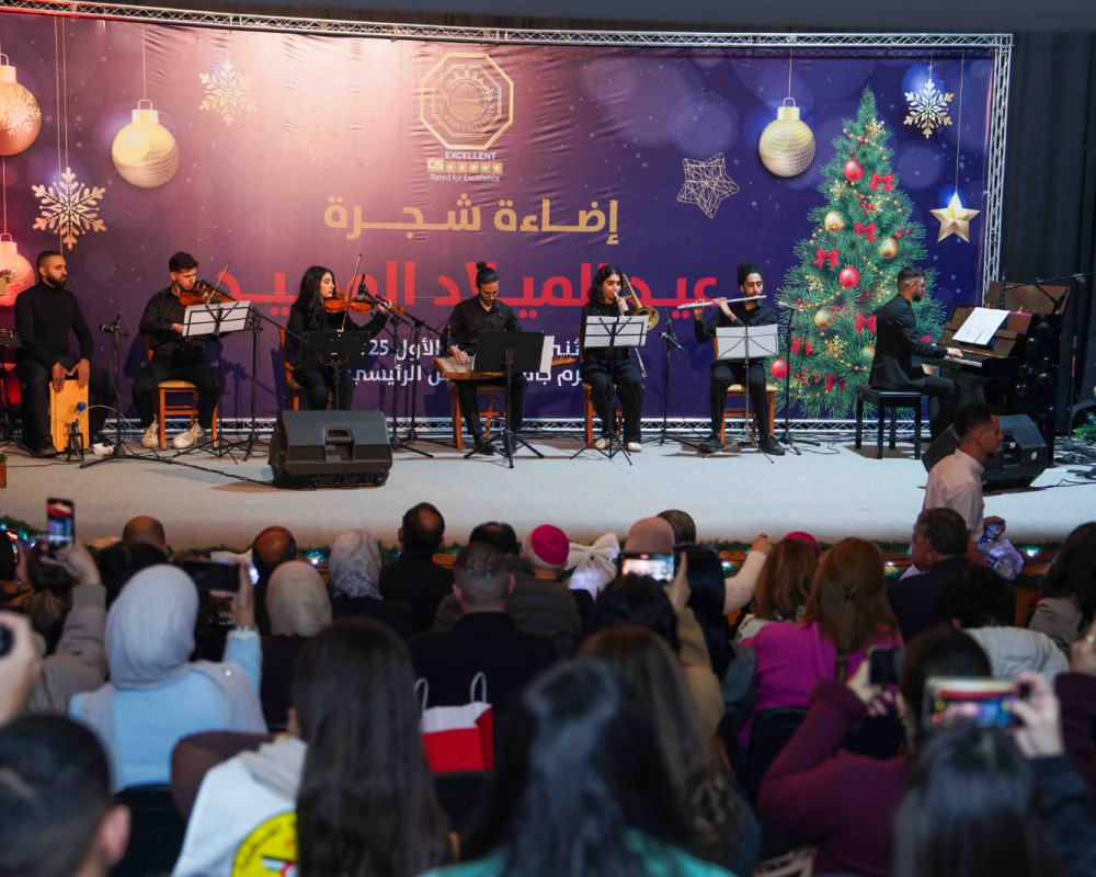وتخلل الحفل عزف موسيقي قدمته فرقة جامعة القدس، وعروض قدمتها الكشافة إيذانًا بانطلاق احتفالات العيد المجيد، إلى جانب تكريم للحضور.