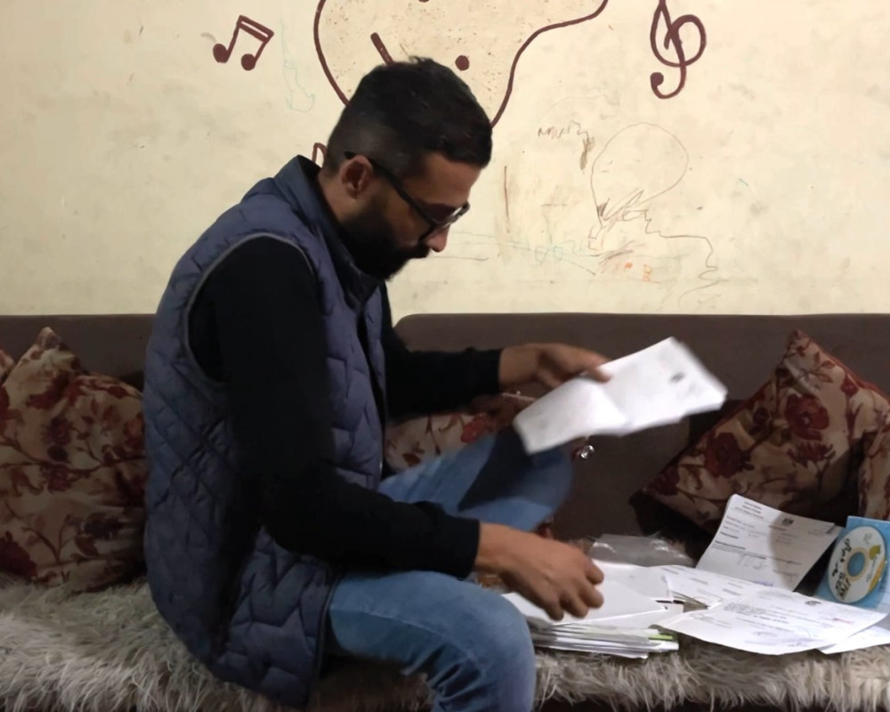 يجلس معز عند عودته من الميدان يقلب اوراق المستشفيات والتقارير الطبية بشان حالته الصحية وكله امل ان يعطى فرصة من قبل المؤسسات الحقوقية والدولية الطبية والعاملة في قطاع الصحافة من اجل اخذ فرصة لتلقي العلاج هو وكل المرضى والجرحى.