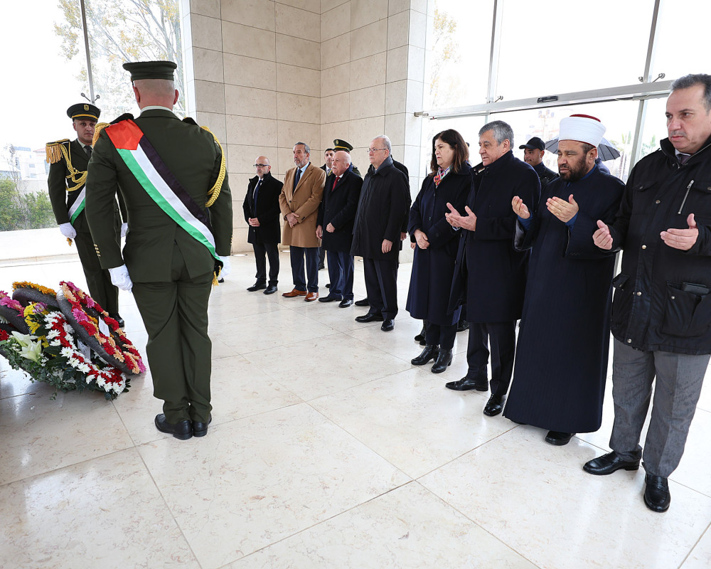 رام الله /PNN/ نيابة عن الرئيس محمود عباس، وضع نائب الرئيس حسين الشيخ، اليوم الخميس، إكليلا من الزهور على ضريح الشهيد القائد ياسر عرفات، في مقر الرئاسة بمدينة رام الله، لمناسبة الذكرى الحادية والستين لانطلاقة الثورة الفلسطينيّة المعاصرة انطلاقة حركة التحرير الوطني الفلسطيني (فتح).
